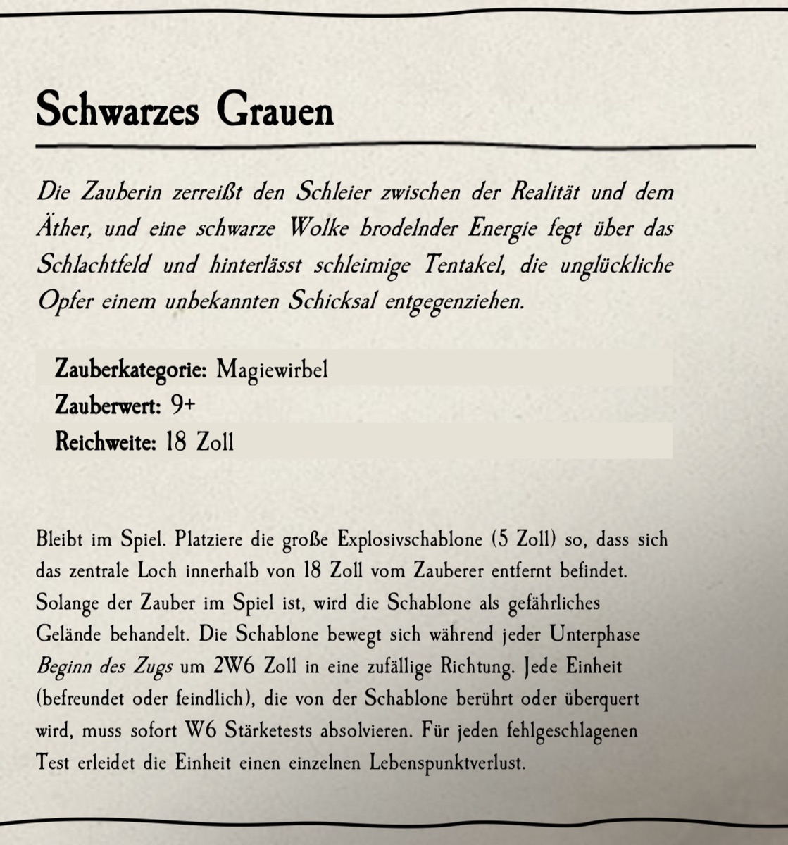 Hallo zusammen ich mal wieder und würde eure Expertiese benötigen. Die Darkelves haben folgenden Spell
