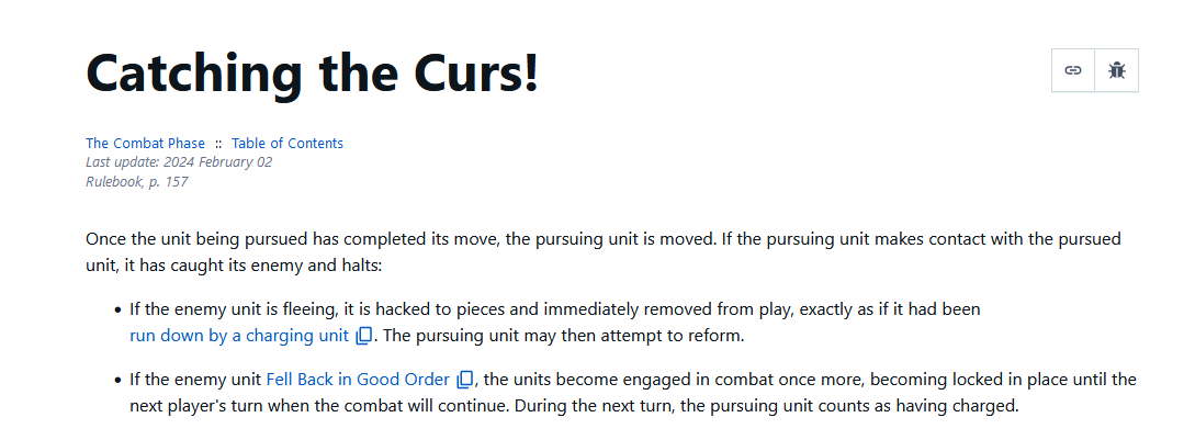 - Du darfst anstatt zu überrennen bzw. zu verfolgen einen Moraltest ablegen um zurückzuhalten und neuzuformieren. Beachte dass rasende Einheiten das nicht dürfen.