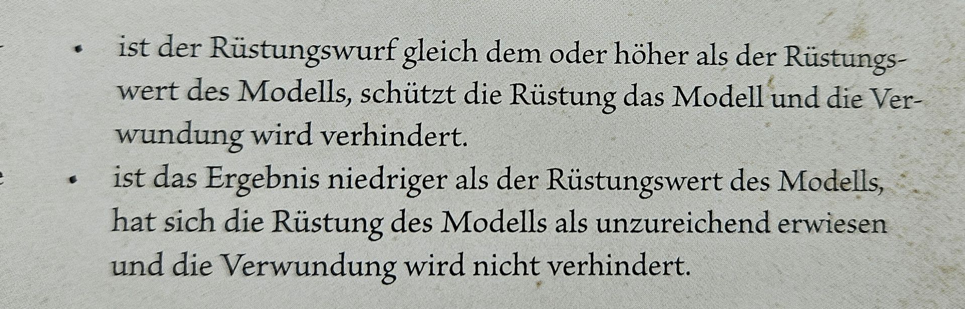 • Wenn man sich mal den Text durchliest, dort steht Modell/Einheit verliert eine Wunde/Lebenspunkt. Da steht nichts von bekommt eine Verwundung. Eine Verwundung kann gerüstet oder gerettet werden. Ein direkter verlorener Lebenspunkt kann das nicht. Diesen kann man nur regenerieren.