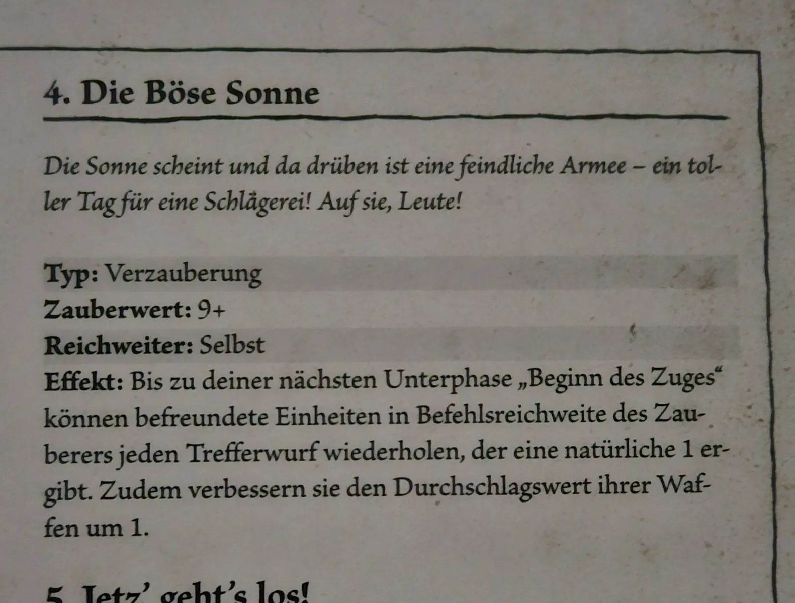 Bzw. Der Zauberer könnte sich von der Einheit entfernen, so daß diese nicht mehr in der Befehlsreichweiter des Zauberers ist. Trotzdem hätte sie den Effekt vom Zauber.???