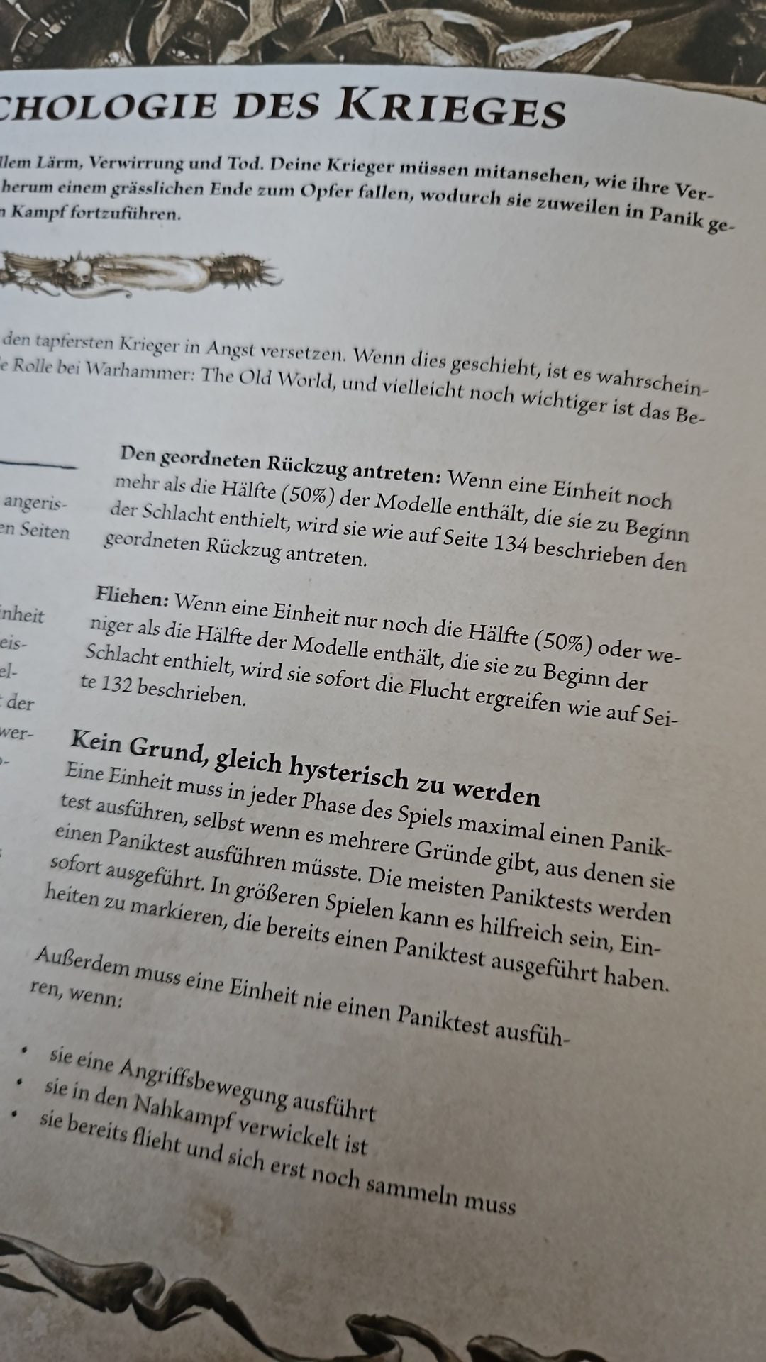 Das heißt Einzelmodelle testen zwar beim Paniktest z.b ausgelöst durch eine vernichtete befreundet Einheit in 6 Zoll, aber fliehen nie treten nur den geordneten Rückzug an