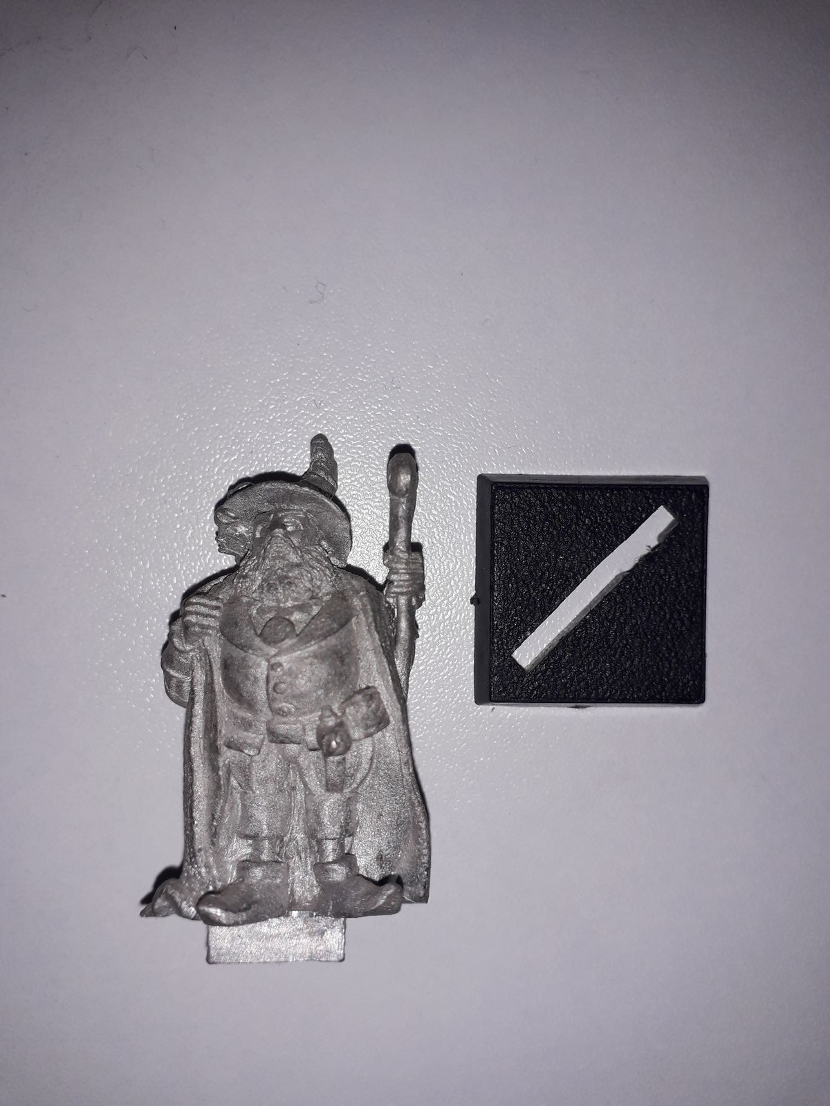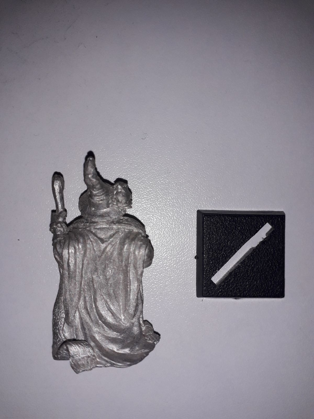 Ich habe in den Unmengen meiner Figuren, während des Katalogisierens meiner Imperiums-Armee, einen Zauberer gefunden. Diesen kann ich leider nicht zuordnen (Firma, Spiel, Erscheinungsjahr, Skulpteur, usw.). Vielleicht kennt von euch jemand diesen Wizard. Für mich sieht er wie ein 3rd Edition (Oldhammer) Empire Wizard aus. Damals waren die Empire Wizards noch nicht in die 8 Colleges aufgeteilt... Für die 3rd Edition (und nicht viel älter) spricht, dass die Figur schon für Slotta Base konzipiert wurde (also den charakteristischen Fuß-Sockel aufweist). Noch was: der Fußsockel ist komplett blank (kein Hersteller, Jahr oder Name).
