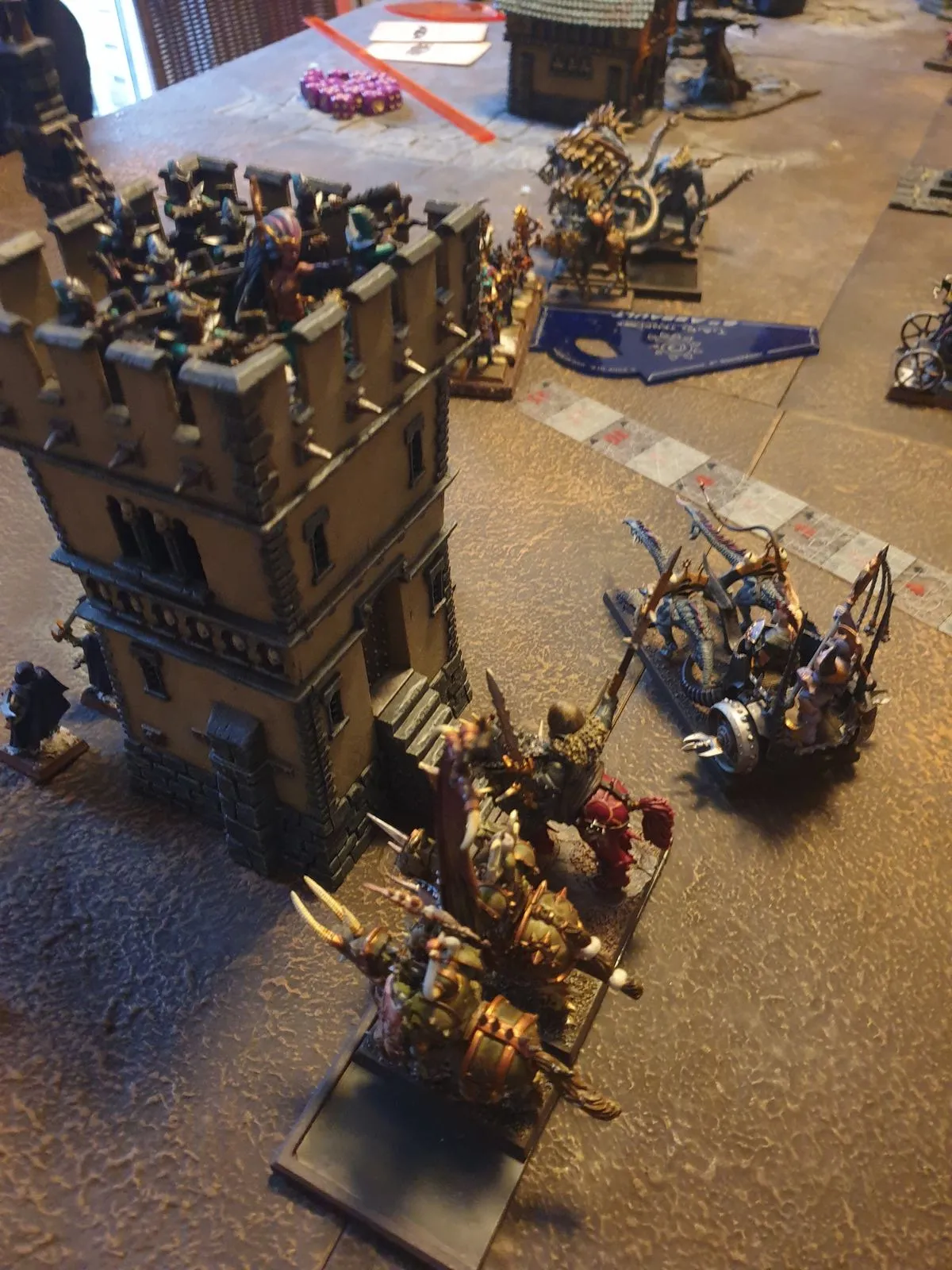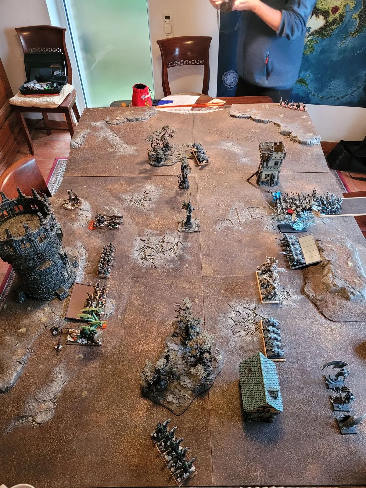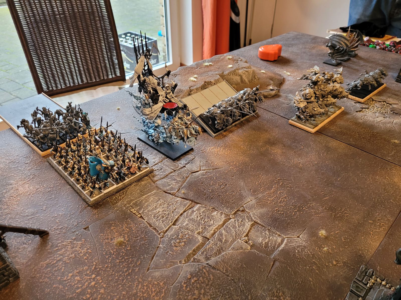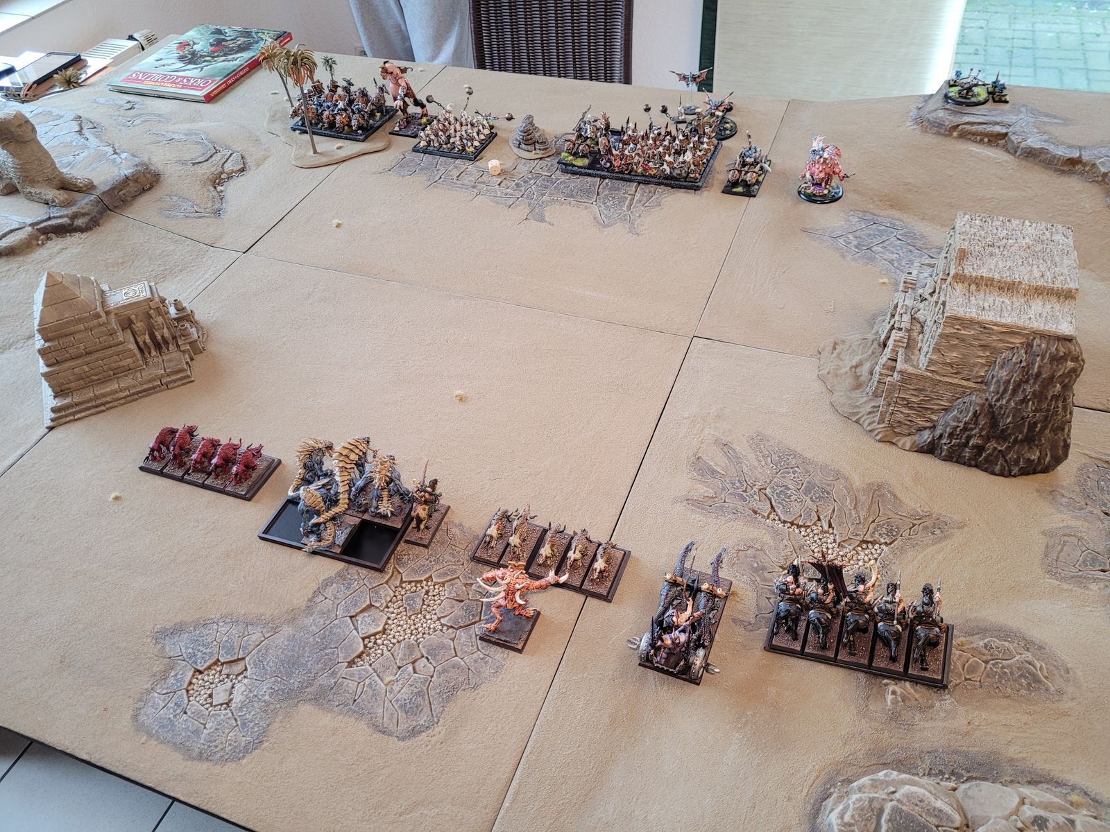 Leider ist uns ja ein Spieler abhanden gekommen, deswegen spielen wir nun zu fünft. Beorn und ich bilden ein Team und machen jeweils ein Spiel, die anderen zwei. Folgende Armeen treten an: