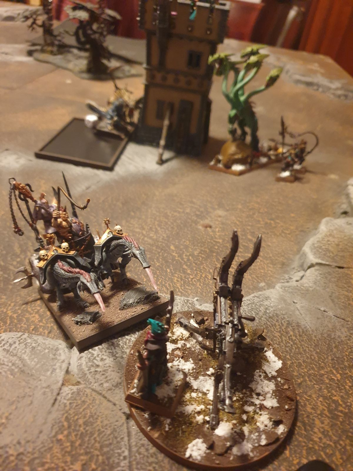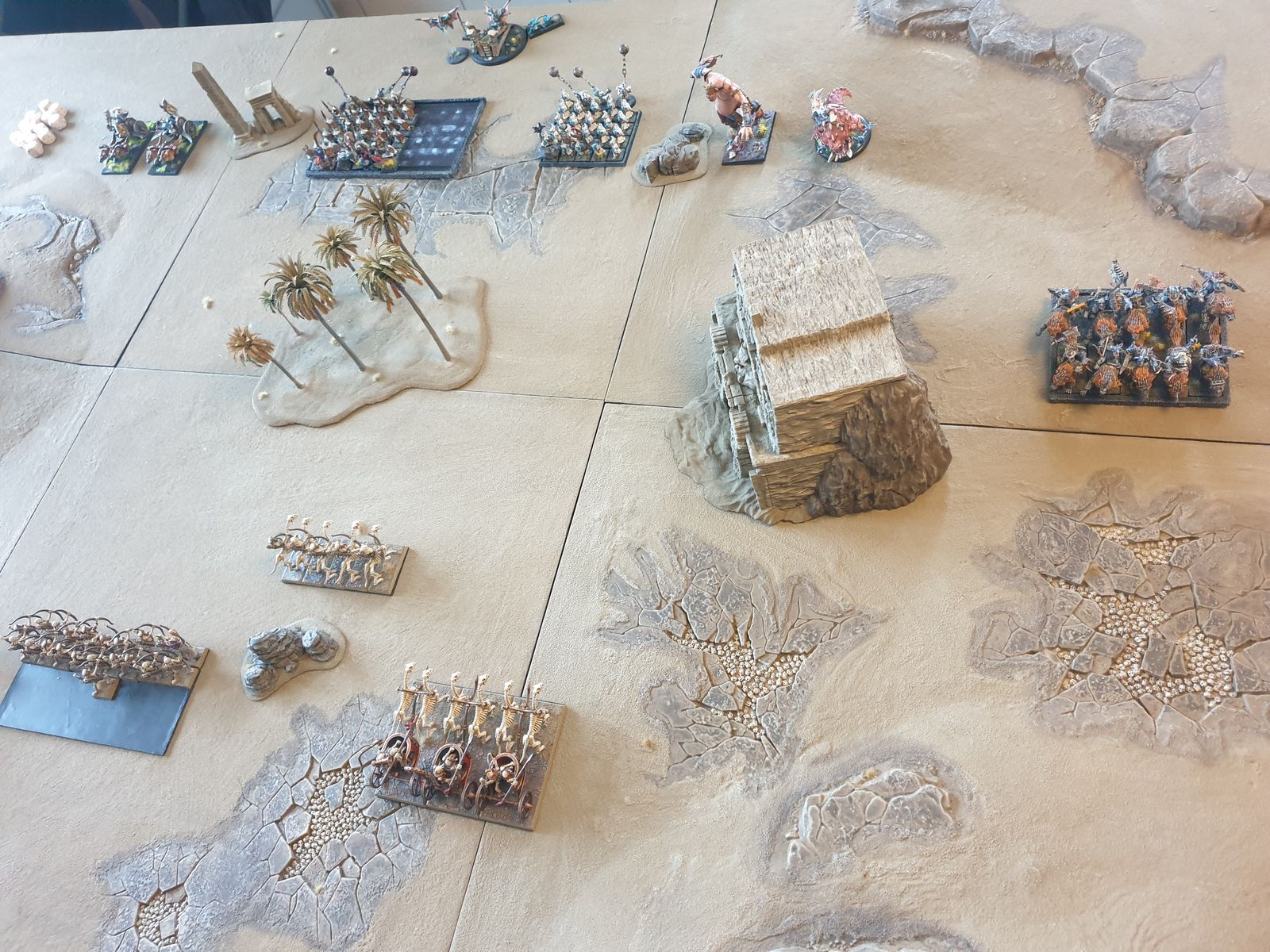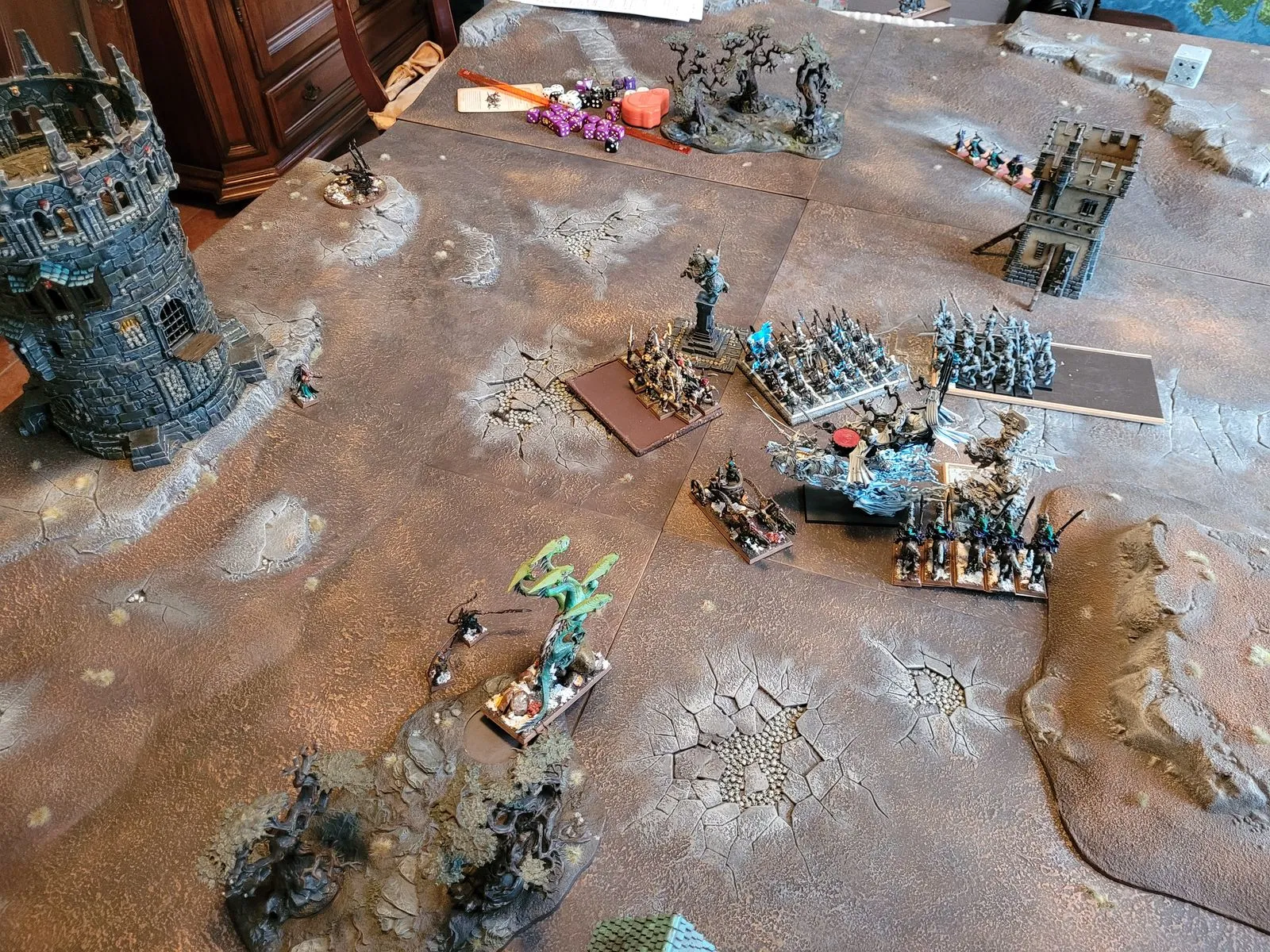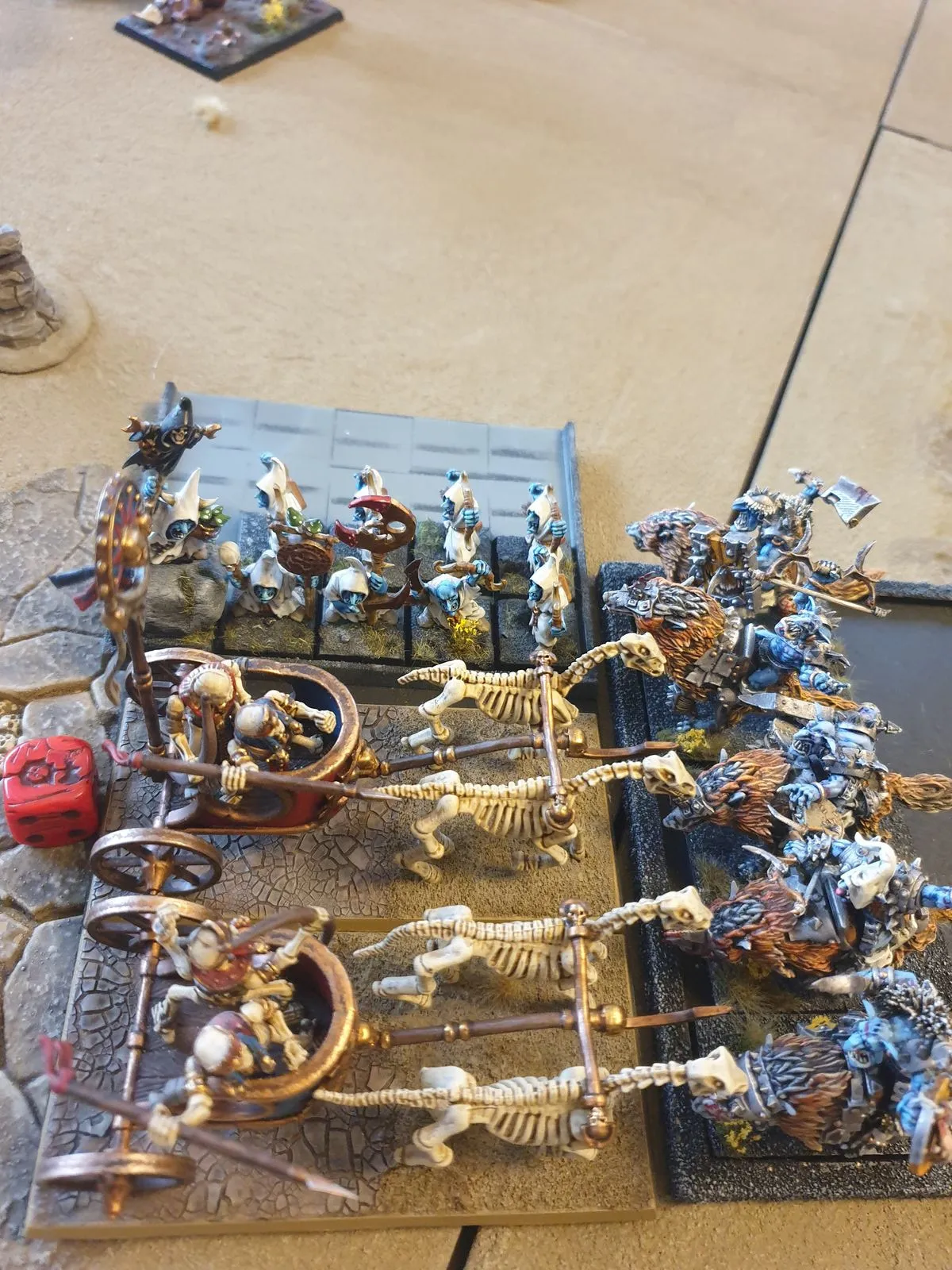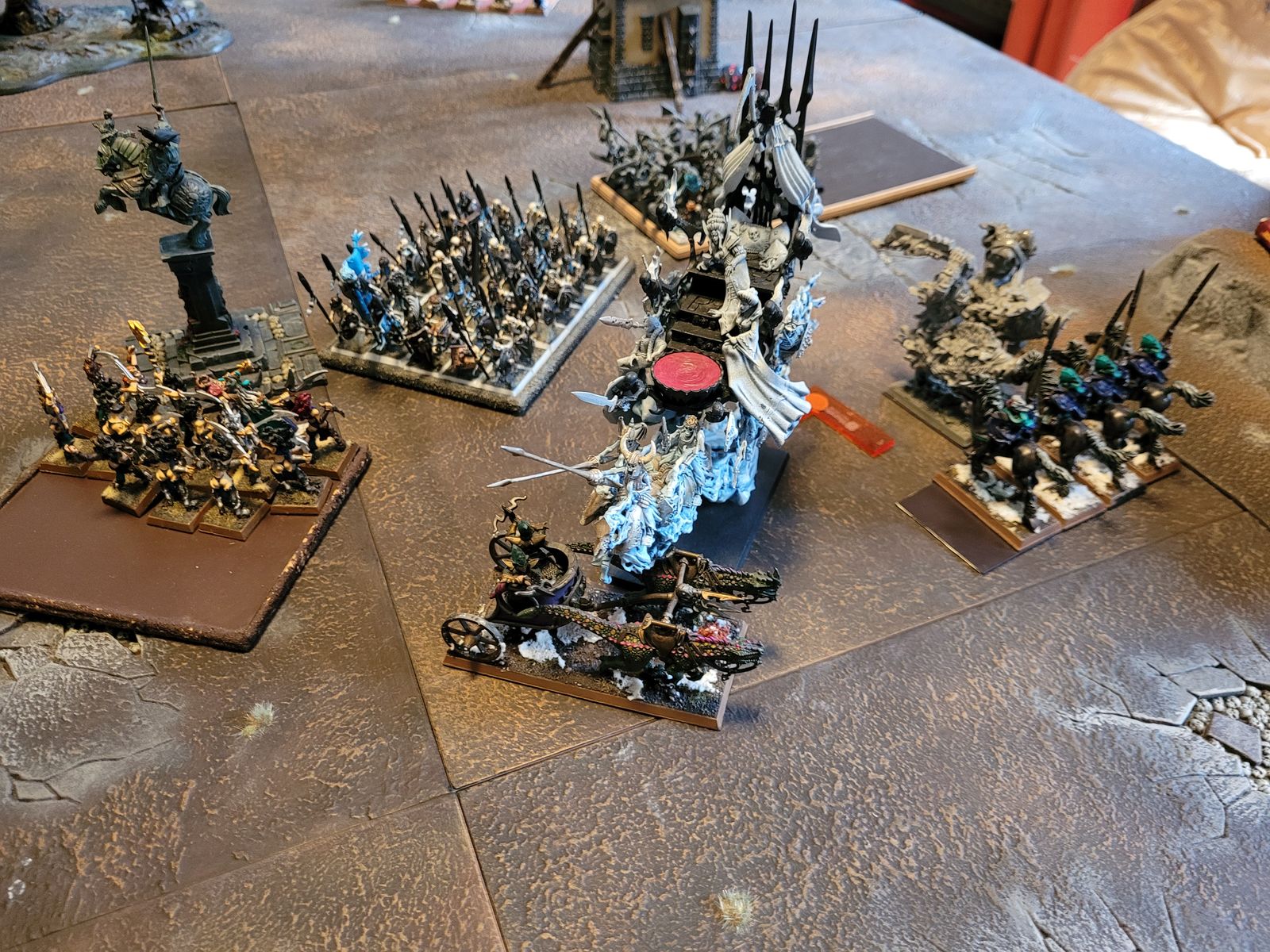 Leider ist uns ja ein Spieler abhanden gekommen, deswegen spielen wir nun zu fünft. Beorn und ich bilden ein Team und machen jeweils ein Spiel, die anderen zwei. Folgende Armeen treten an: