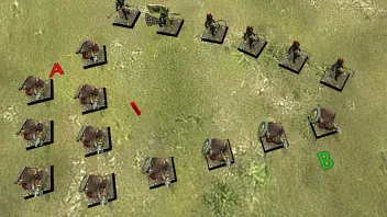 Model A und B sind beide gleich weit entfernt, dürfen die Angreifenden Elfen nun aussuchen welches Zwergenmodell sie angreifen? Denn auch hier hat dies starke Auswirkungen darauf, wieviele Zwerge bei A zurückschlagen werden verglichen mit B als angriffsziel.