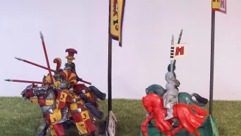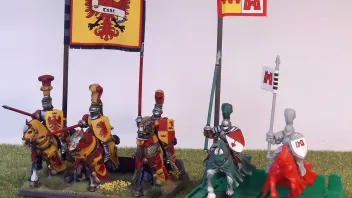 • Zum Vergleich die Originalfiguren und die neuen Miniaturen für die Ritter. Inhaltlich möchte ich sowohl die im Spiel verwendeten Einheiten modifizieren, als auch neue Einheiten hinzufügen. Ich arbeite mich dabei von Regiment zu Regiment.