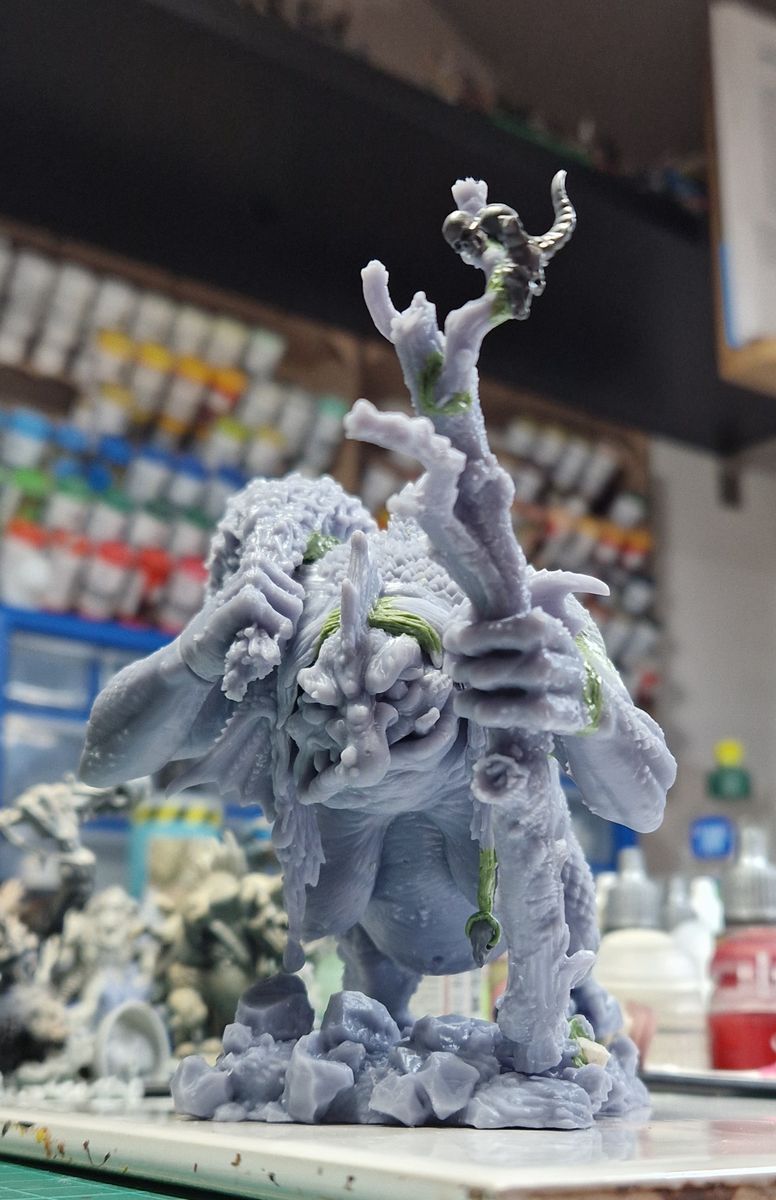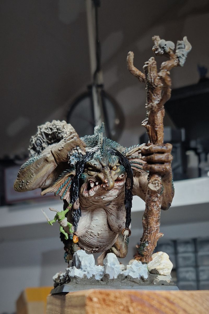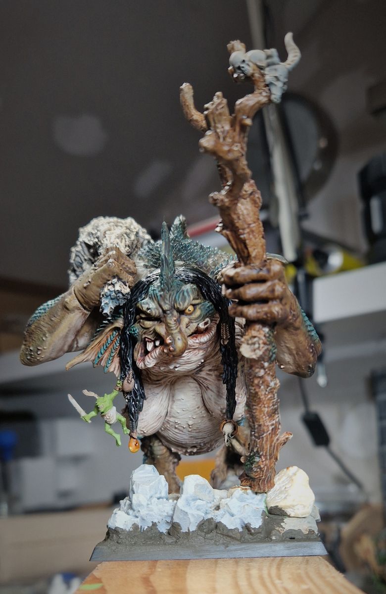 Das ist die Troll Hag von Forge World, wenn ich mich nicht total irre. Schönes Modell, aber in anbetracht der Menge an Greenstuff, eher "gewohnte" Guss- (nicht Druck-) Qualität.