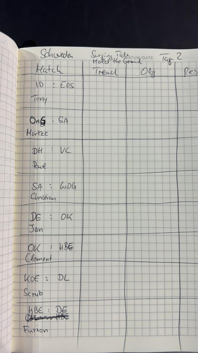 wäre mal an der Matrix interessiert was die erwarteten Ergebnisse waren für die Spiele.