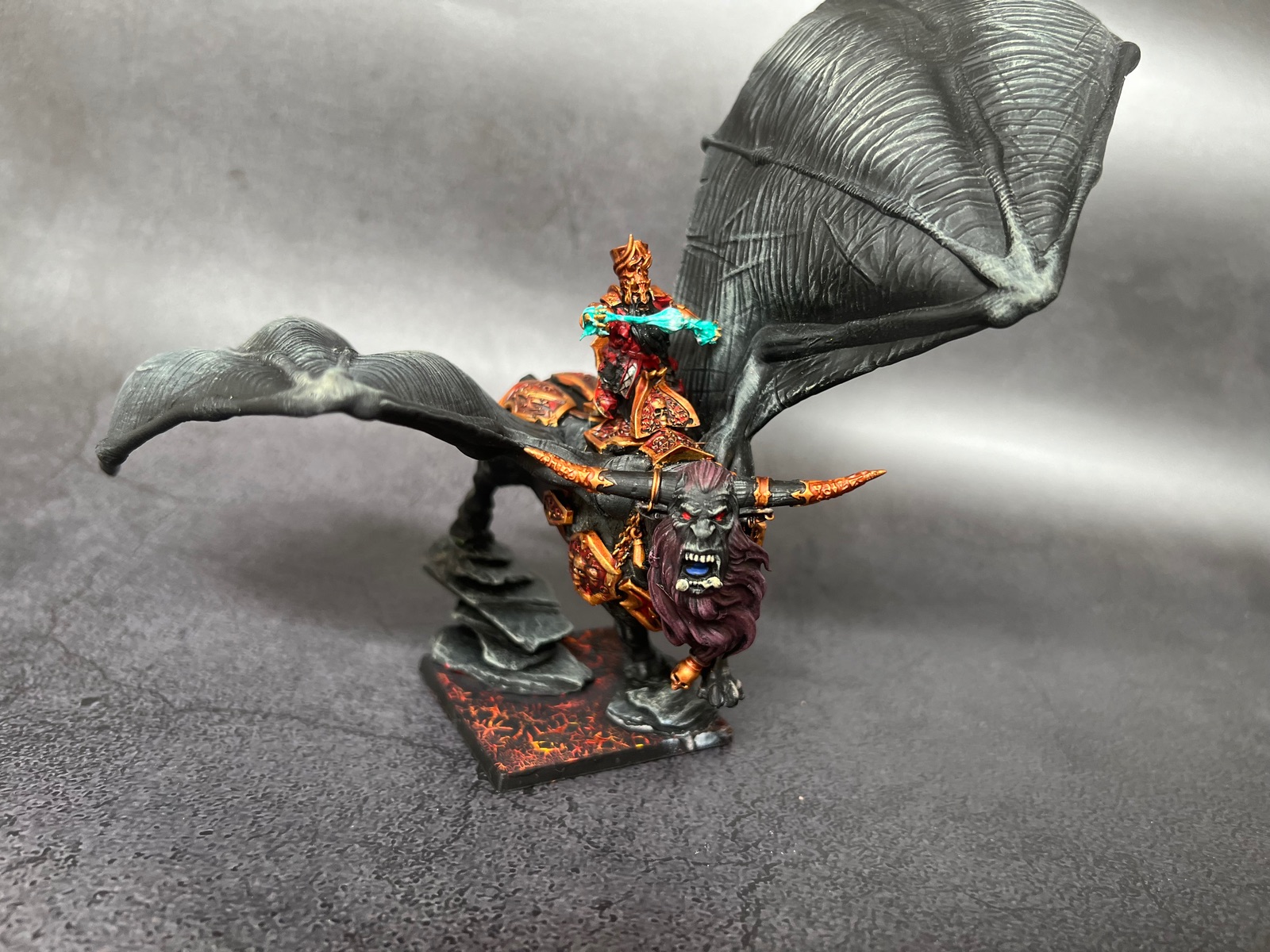 Als ich das Paket mit den Miniaturen aufgemacht habe, war die erste Frage in meinem Kopf: Wie konnte das passieren? Um ehrlich zu konnte ich früher wenig mit Chaoszwergen anfangen, diese Old School Knuddel Chaoszwerge waren nie etwas für mich. Allerdings hat mich die Infernal Dwarves Range von Lost Kingdom dann Anfang des Jahres ziemlich eiskalt erwischt, die ganze vorderasiatische Ikonographie ist Weltklasse. Spätestens bei Bulle beißt Löwe hat’s mich erwischt. Tatsächlich mag ich auch die Lore der kleinen Hitzköpfe bei T9A. Von den Regeln her haben sie Zugriff auf ordentlich mobile Einheiten und haben eine In-Öl-Tränken-dann anzünden -Mechanik, die einem kleinen Pyromanen wie mir ziemlich Spaß macht.