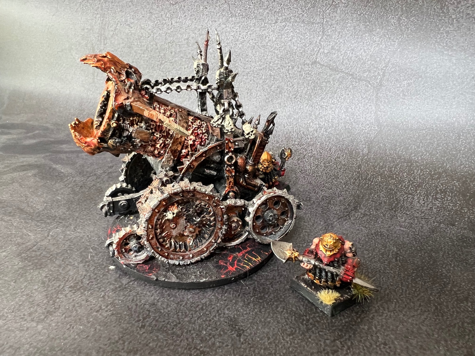 Aus der primitiven Technolgie der Höhlen-Zwerge mal was Gescheites gemacht: 2x Vassallen Slinshot. Wer hier den GW Zusatzbit auf der linke Kanone erkennt, kriegt die Alleswisser Lavalampen Auszeichnung 🥇
