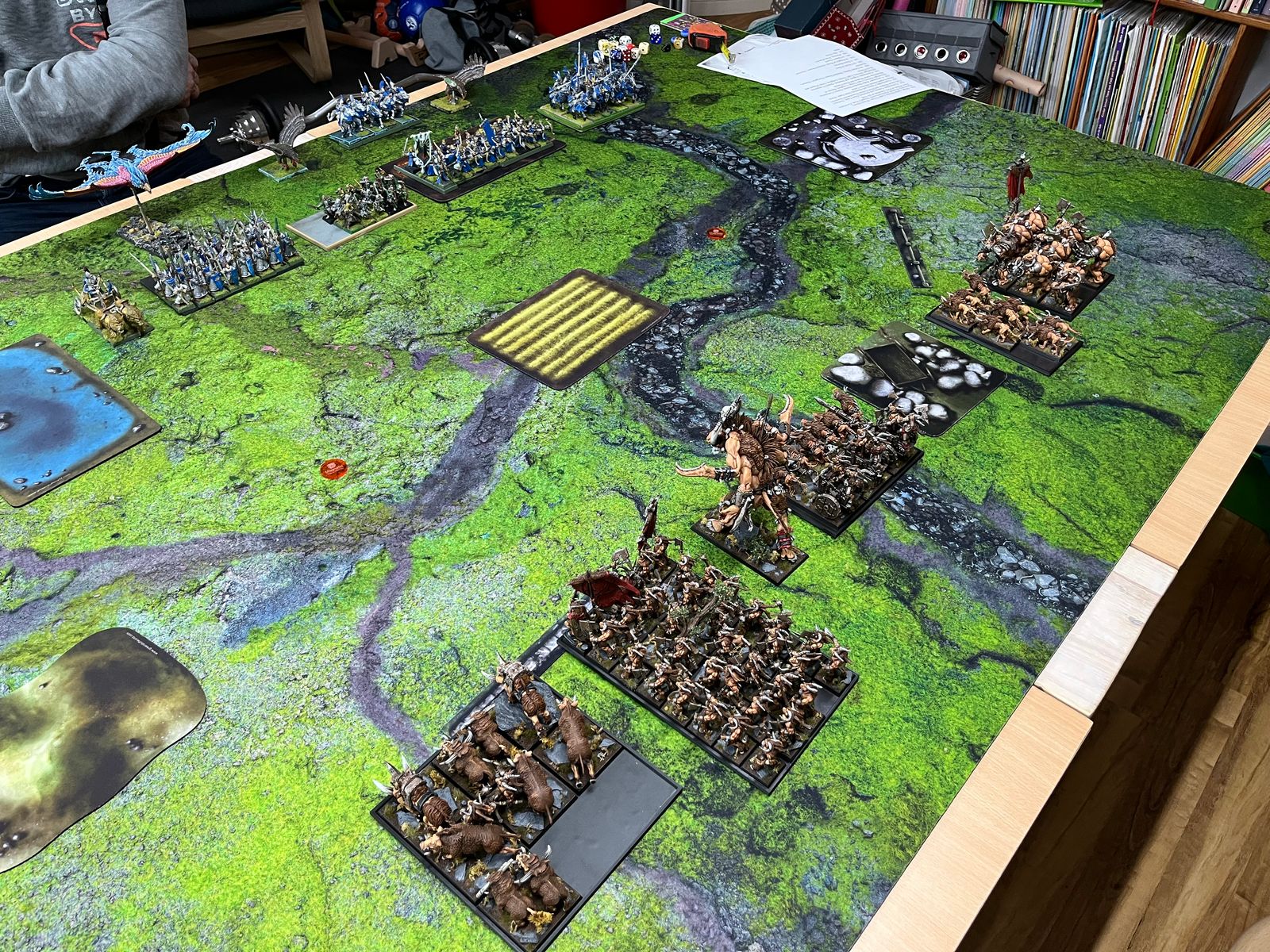 Ich muss sagen das ich die Seegarde mit Off/Def 5 (und Speerlord) total unterschätzt habe. Ich hatte mich auf ein Shootout in der Mitte eingestellt (und meine Lugars sollten dann den Rest abräumen). Stattdessen ist Heiner mit der Seegarde und dem Streitwagen einfach durch marschiert und hat eine Einheit nach der anderen abgeräumt. Alles in allem ein verdienter 18:2 Sieg für Heiner.