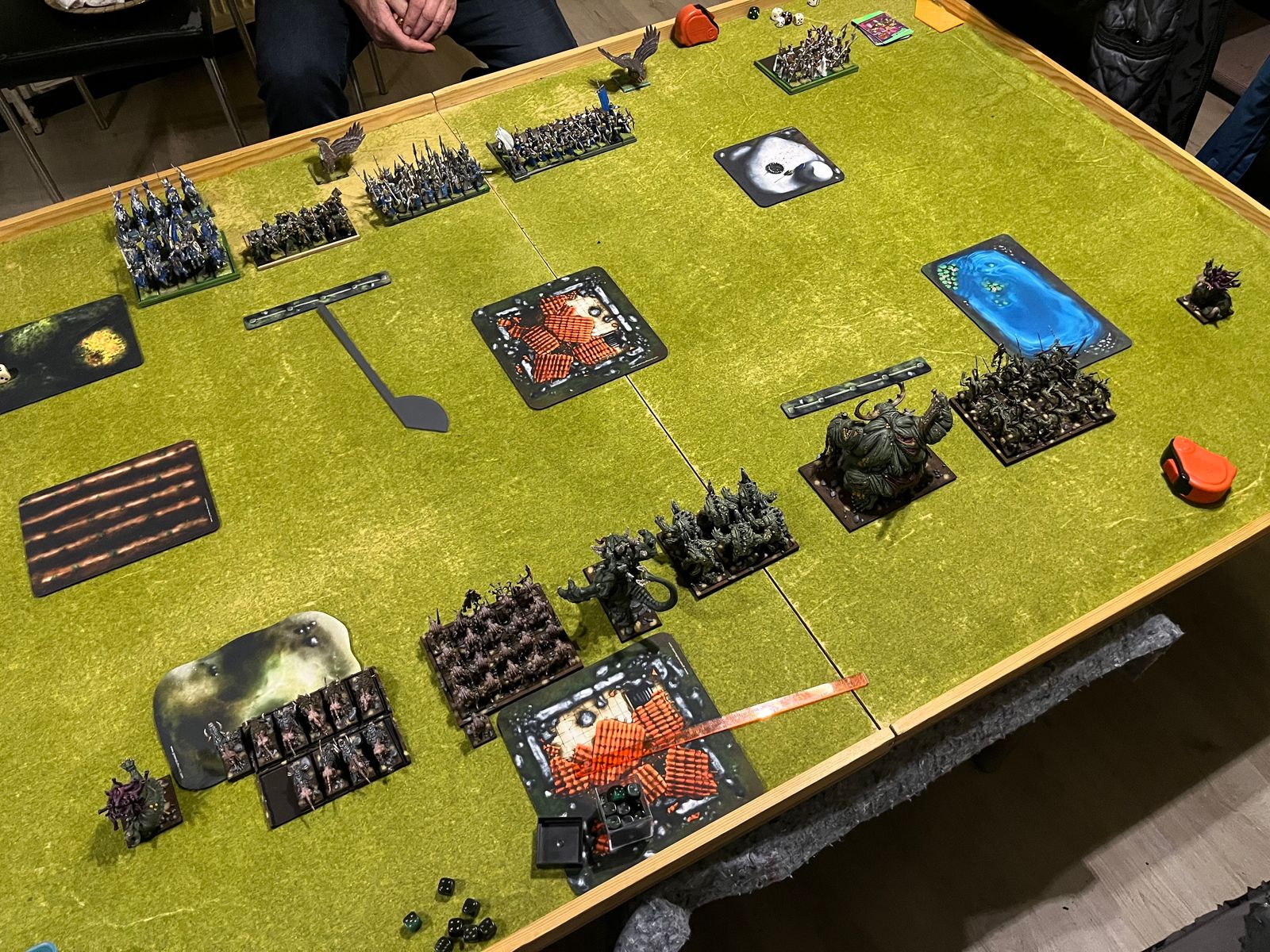 Damit es nicht genau gleich abläuft, haben wir die Seiten getauscht und ich habe alles aufgestellt, um anzufangen. Was aber kein Vorteil ist, denn so konnten sich diesmal die Hochelfen gegen mich ausrichten.