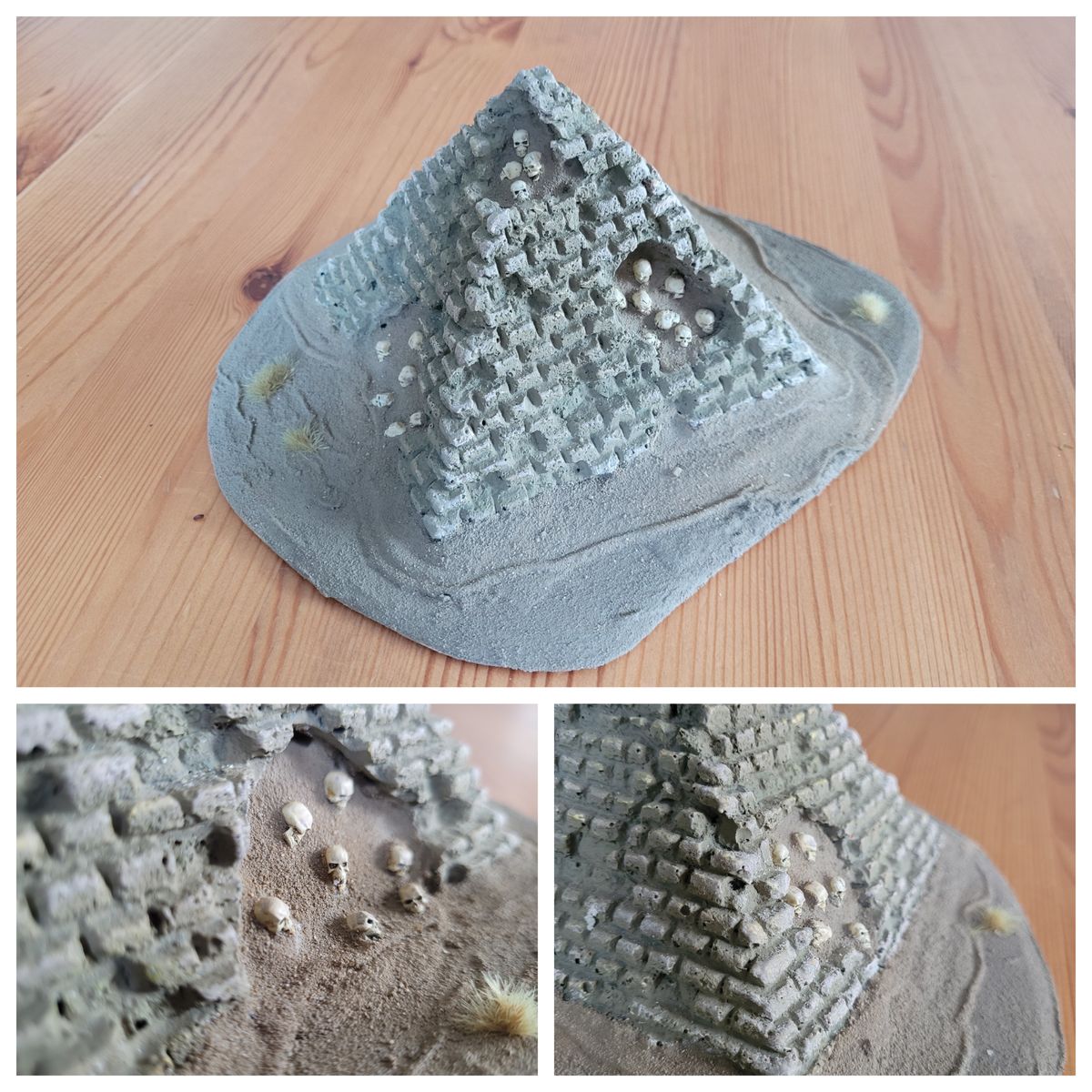 Meine beiden Beiträge sind weitere Ergänzungen zu meiner Wüstenplatte. Das erste ist eine Aquariums-Pyramide die ich als eine Pyramide des Nagash für ein Warhammer 8. Edition Szenario gebastelt und bemalt habe. Einen Spielbericht dazu wird es mit Suschi927 zusammen im Adventskalender geben.