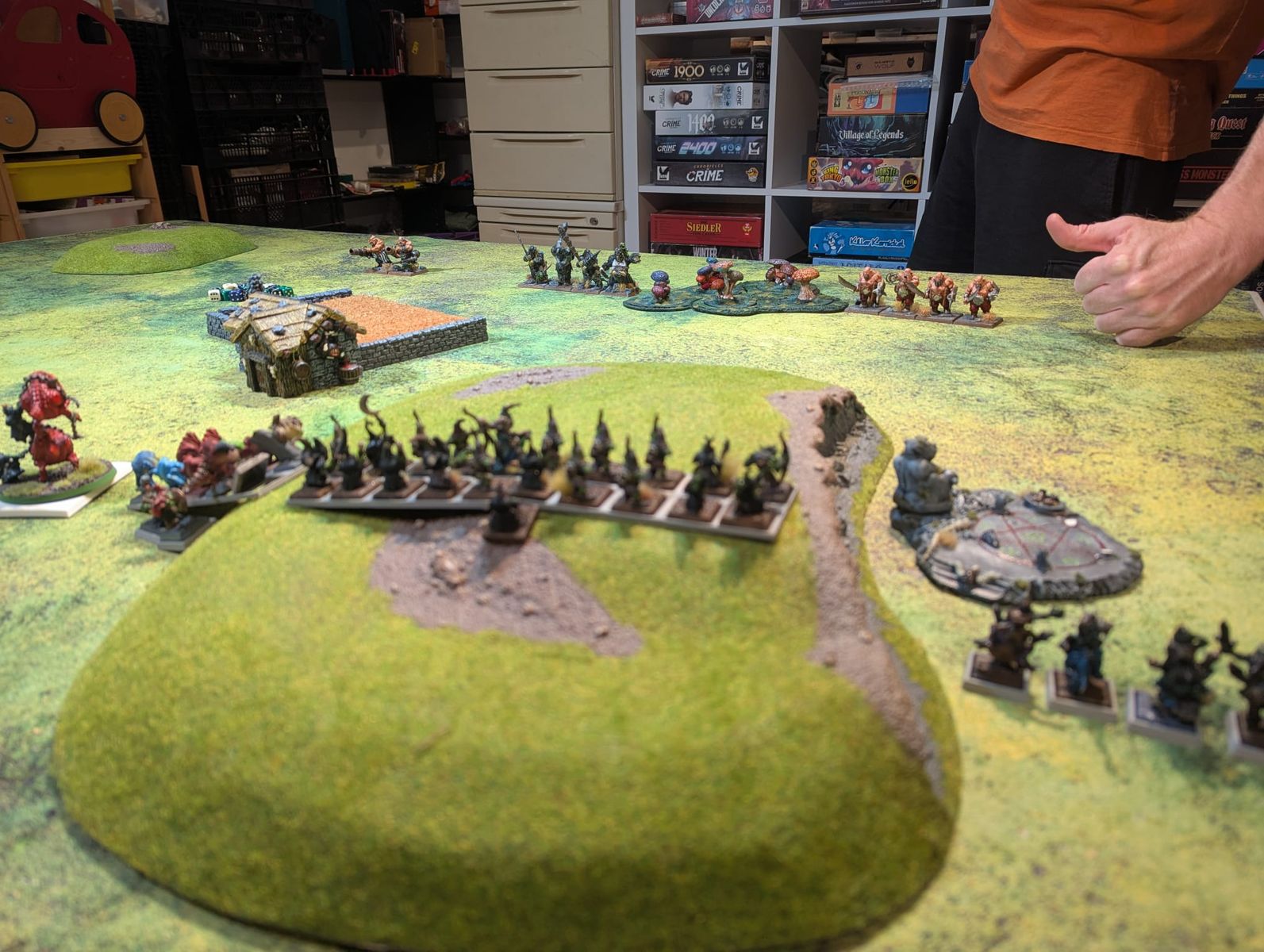 Dann kam eine Runde 500 Pkt. Warhammer ToW. Hier haben meine Goblins ganze Arbeit geleistet und mit sehr Viel Glück und noch mehr Taktischem Geschick die Schlacht für sich entscheiden können. Wobei wir uns echt nicht sicher sind wie das mit der Zufälligen Bewegung bei Plänklern in ToW gedacht ist.