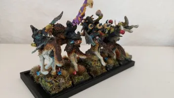 Klasse Idee und sehr dynamisch die Kombi aus Nachtgoblinreitern und fenrisianischen Wölfen. Die scheinen größentechnisch auch super zueinander zu passen. Bin erst davon ausgegangen, dass du die klassischen Goblinreiter verwenden würdest.