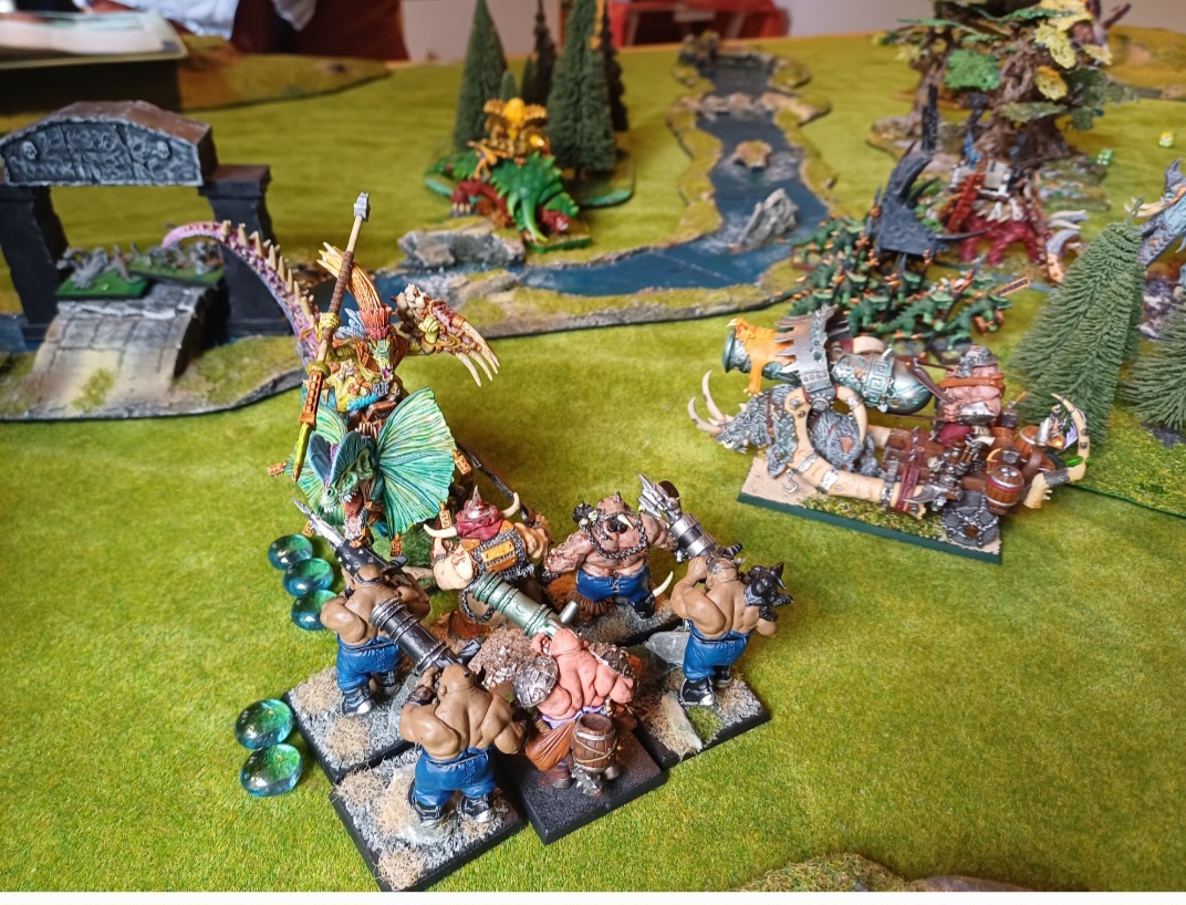 Angetreten bin ich gegen ne Liste mit Slann in Sauren, Bastilladon mit Sonnenmaschine, Stegadon mit Geschärften Hörnern, Troglodon, Nem Seher in ner Skinkkohorte, Skinkplänkler , nen Hornnackenveteran auf dem Carno und zwei Dschungelschwärme.