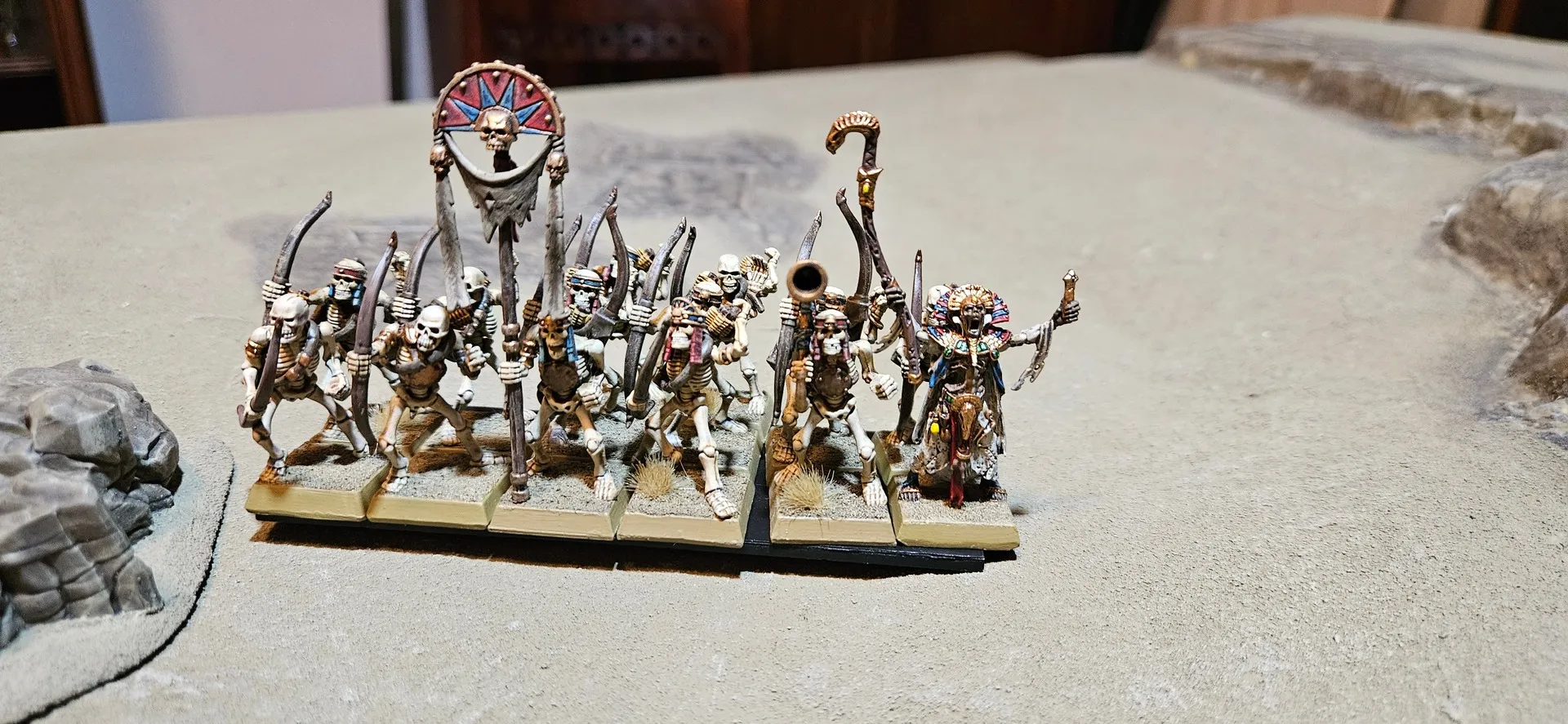 10: Die Einheit findet in den Pyramiden ein altes verzaubertes Chepesh. Der Einheitenchampion oder ein Charaktermodell in der grabenden Einheit kann es an sich nehmen und als magische Waffe für den Rest der Schlacht nutzen. Das Chepesh gewährt seinem Träger +2 Attacken, sowie die Sonderregel Giftattacken. Wenn das Chepesh bereits in einer früheren Runde gefunden wurde passiert bei diesem Ergebnis gar nichts.