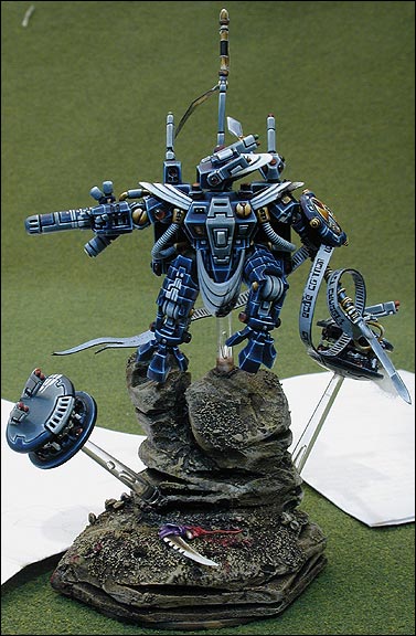 Das Modell hat irgendwie seinen Tau-Charakter verloren, denn diese Schriftrollen und Schulterpanzer erinnern mich stark an Imps und Marines. Mit dem Base hätte der Künstler sich etwas mehr mühe geben sollen.