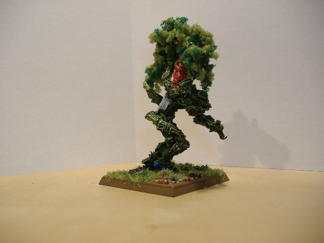 Ich hätte eher eine Farbe im Bereich Blau oder Grau gewählt, da diese eher zu einem Winterfarbschema passen und nicht so hervorstechen. Wenn man eine Armee hat, die zu Großteilen in blassen Farben bemalt wurde, dann dürfte der Waldgeist recht stark herausstechen.
