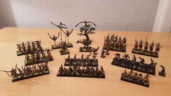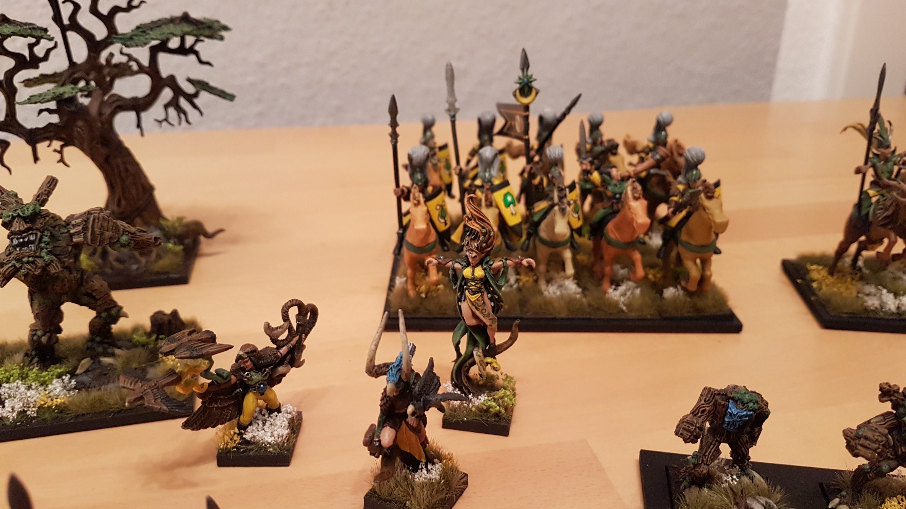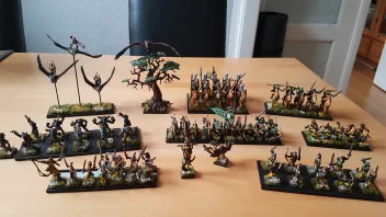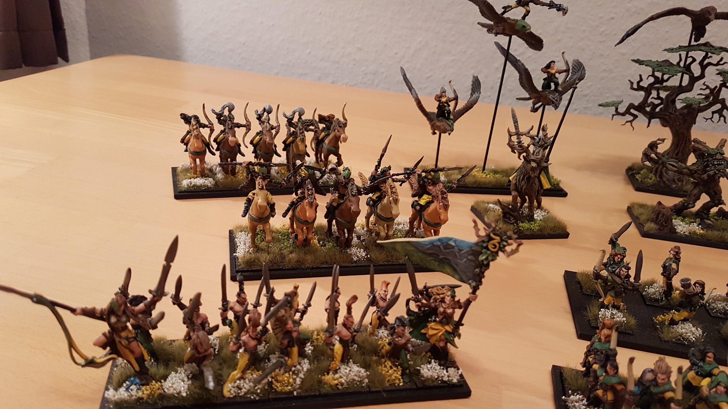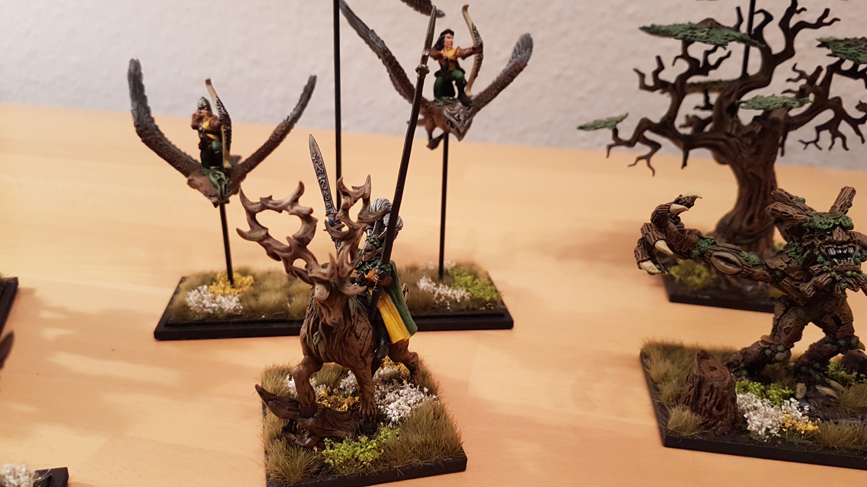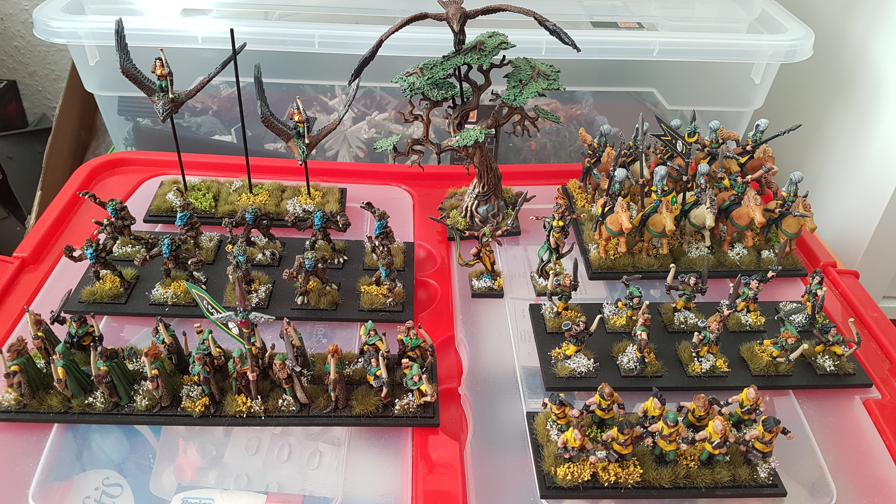 Tolle Armee mit ganz vielen schönen alten Modellen. Ich mag das klassische gelb-grüne Farbschema (so sahen die Waldelfen zum Release Mitte der 1990er aus). Dazu kommen die Bases mit den Blumen, sehr schöne Kombination.