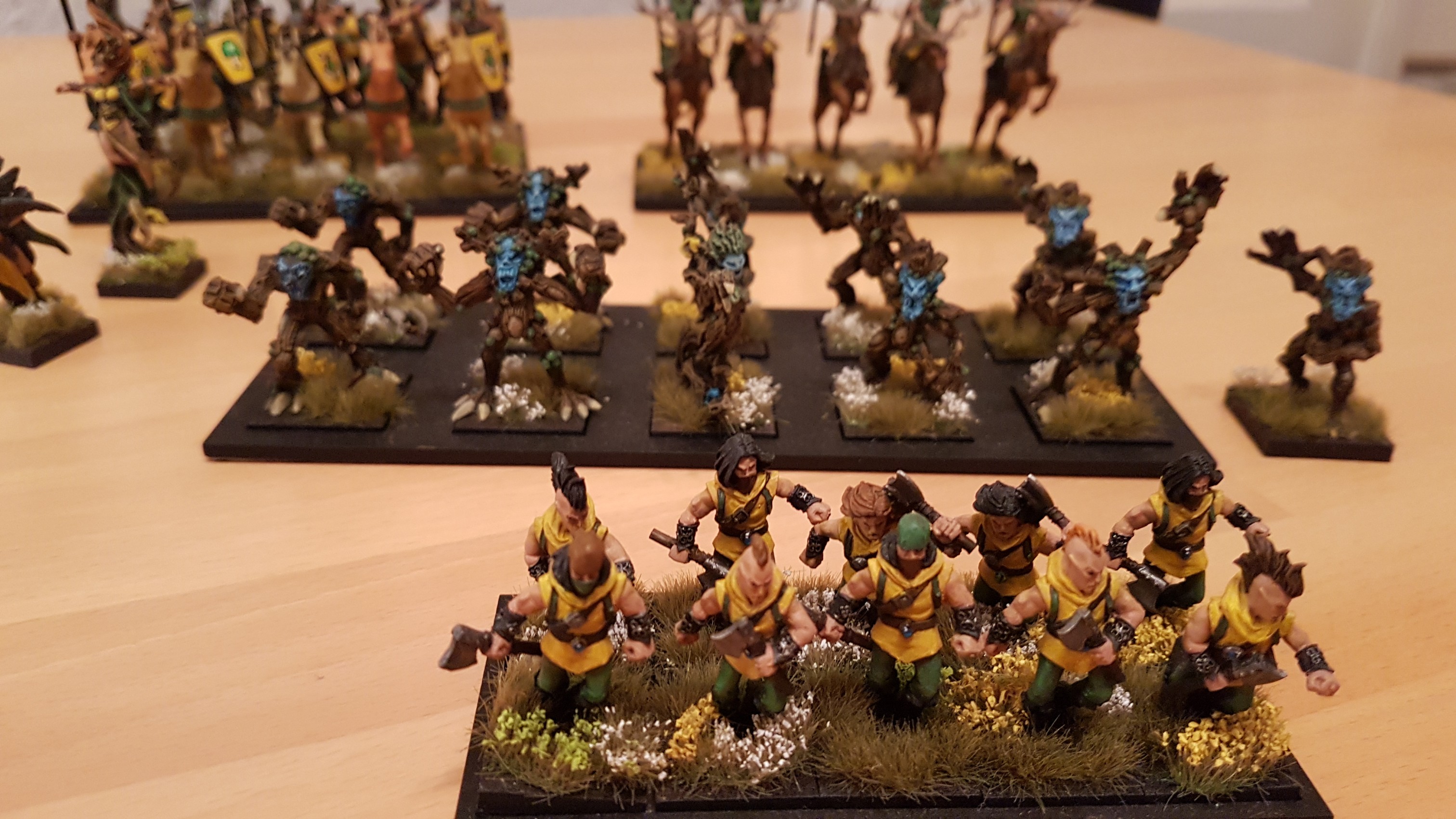 Was haben die Holzfäller denn in der Waldelfenarmee vor? Man sollte meinen die werden direkt mit Pfeilen gespickt, sobald sie sich Athel Loren nur auf 100 Schritt nähern.