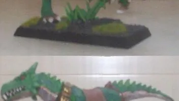 Bin jetzt 2 Wochen bei meiner Mutter zu Besuch gewesen. Da man dort auf dem Dorf nix zu tun hat, kam ich mal wieder zum Bemalen. So ziemlich jede Einheit ist jetzt mindestens halb fertig (meist fehlen nur noch die Waffen). Einen Skinkschamanen habe ich vollständig fertig bekommen (bis auf das Base). Leider reichen momentan die Lichtverhältnisse nicht aus, um ordentliche Bilder zu machen. Ich hab alles versucht: Mit Blitz, ohne Blitz, mit allen Lampen von allen Seiten ausgeleuchtet usw., aber es kam nichts Gutes raus. Ich versuche es morgen bei Tageslicht erneut.