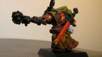 Unten mal ein paar Bilder. Ist meine erste Figur und ich habe leider auch nur 10 GW-Farben udn einen dünnen Pinsel als Material (HdR Starter-Bemalset).