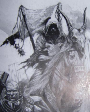 Seit dem Tag als ich das erste mal das Imperium Armeebuch (6.Edition) in der Hand hielt und durchblätterte war mir eines klar, so einen düsteren Reiter, wie der auf dem Bild auf der Seite mit den Flagellanten (Seite 17, bzw unten ist ein Bildausschnitt) wollte ich auch haben!