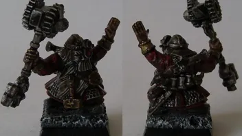 Das angehängte Modell eines Maschinisten aus Plastikteilen der Zwerge hat mich von der Idee über den Zusammenbau und die Bemalung bis zum Beenden des Dippens gerade mal 1,5 Stunden gekostet und gehört meiner Meinung nach zu den besten Modellen, die ich je fertig gestellt habe (kommt auf dem Bild leider nicht so rüber, da der Glanz doch arg verstärkt wird). Hierbei ist die Trockenzeit der Farbe schon eingerechnet (diese entfällt ja bei Regimentsbemalung). Der einzige Punkt, der lange gedauert hat, war die Trockenzeit des Dips, aber da das Modell effektiv shon fertig war und nur noch rumstand, ist dies irrelevantWenn man das jezt mal auf einen schmucklosen Goblin in annehmbarer Tabletop-Qualität runterrechnet, kommt man auf, sagen wir mal, 20 Minuten. 30 Goblins (also ein taktisch sinnvolles Regiment) machen also 10 Stunden Arbeit.