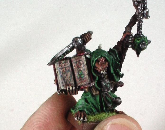 Hab schon nen Seuchenpriester mit dem Buch...deswegen wär das bei meinem Regi übertrieben...hatte dem CH auch erst diese Schriftrolle in die hand gedrückt, aber dann hinterher doch den Flegel als 2. handwaffe Drangebastelt, damit man beide GEsichtshälften sehn kann ( is der Kopf mit der Skeletthälfte).