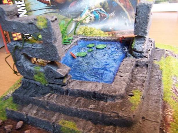Sty: also ich würde vlt. ein bisschen klarlack auf den See streichen, den kann man gegebenenfallls auch ein bisschen mit grün mischen, dann gibts einen leicht algigen Effekt. Ansonsten sieht er echt gut aus! Hast du nicht mittlerweile noch mehr Gelände? Bald stell ich mal noch ein Bild von einem Brutpool rein, aber dauert noch ein paar Tage... -