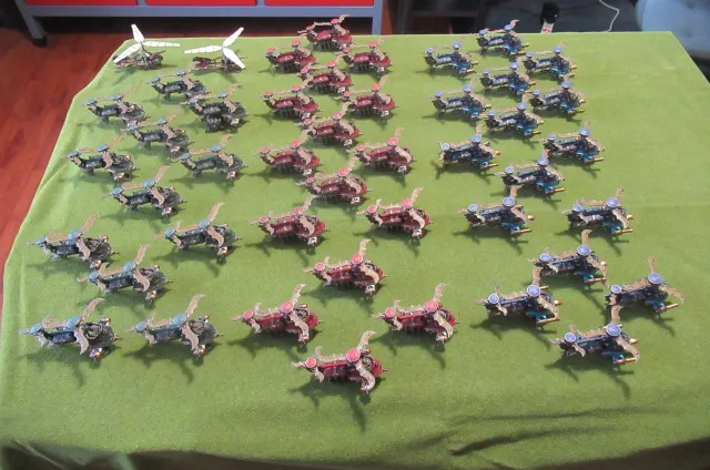 Eine Frage: Ich hatte immer gedacht, dass die Zwerge ihre Waffen, Fahrzeuge, Flugzeuge sehr individuell bauen. Sprich: Eigentlich alles Einzelstücke. Bei Dir sieht es - in der Masse - sehr nach Serienproduktion aus.