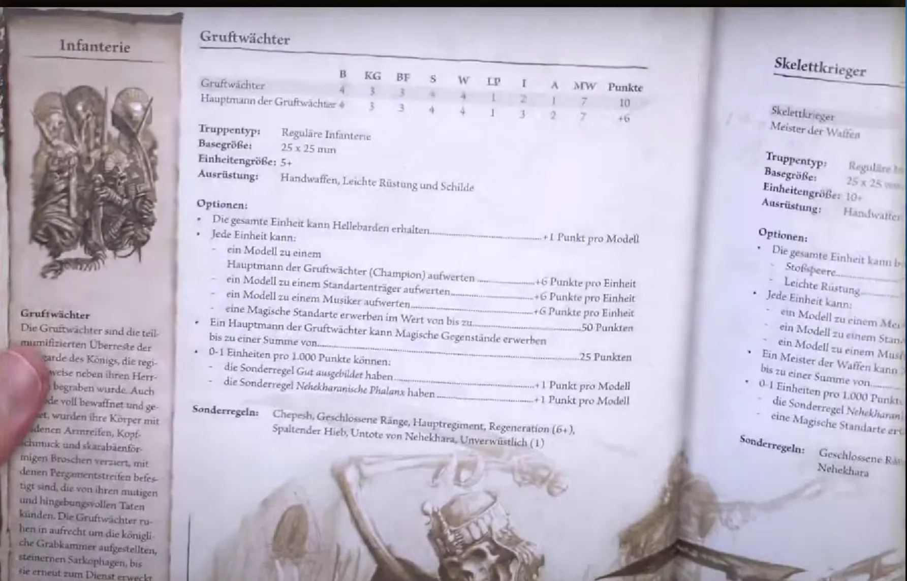 - Necrolith Bonedragon: +1 Widerstand und +5 LP, zusammen mit magischen Gegenständen wie Armour of the Ages (Reroll successfull Wounds) scheint mir einen Gruftkönig schon ziemlich Tough zu machen (andererseits lässt mich das annehmen, dass alle Drachen und Co. ähnlich hart daher kommen werden).