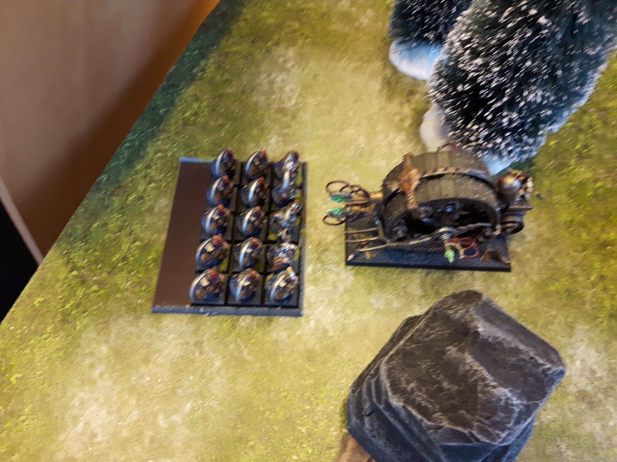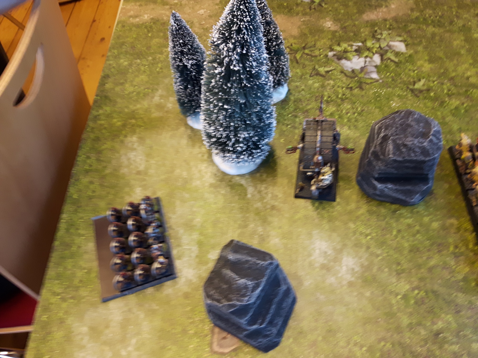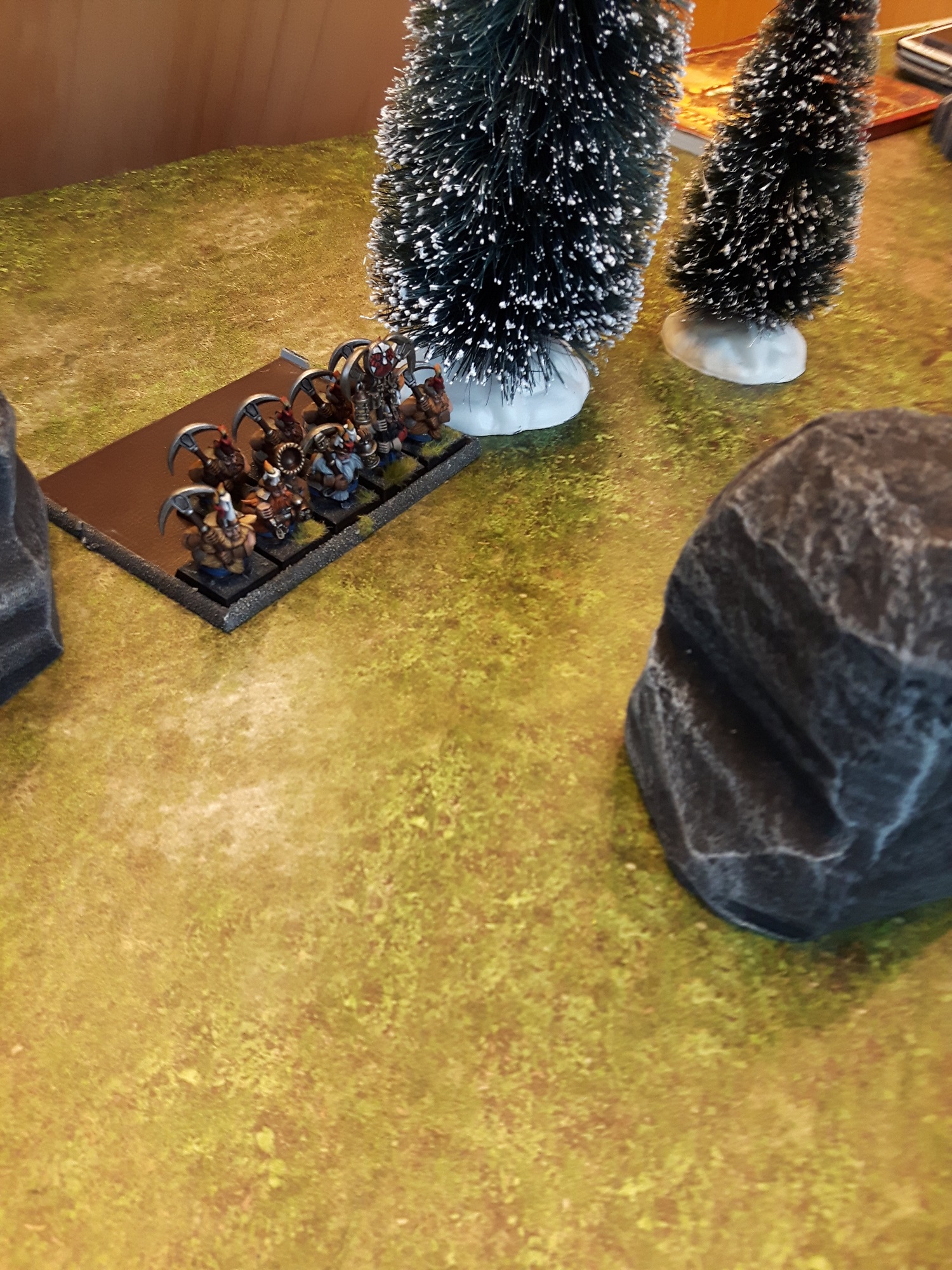 Fluff-technisch werden es erneut die Zwerge sein. Immerhin ist der Übergriff fehlgeschlagen und die Warpschmelzer müssen es erneut versuchen. Sollte sich allerdings ein anderer Gegner ergeben, kann man das Setting gewiss auch unterbringen.