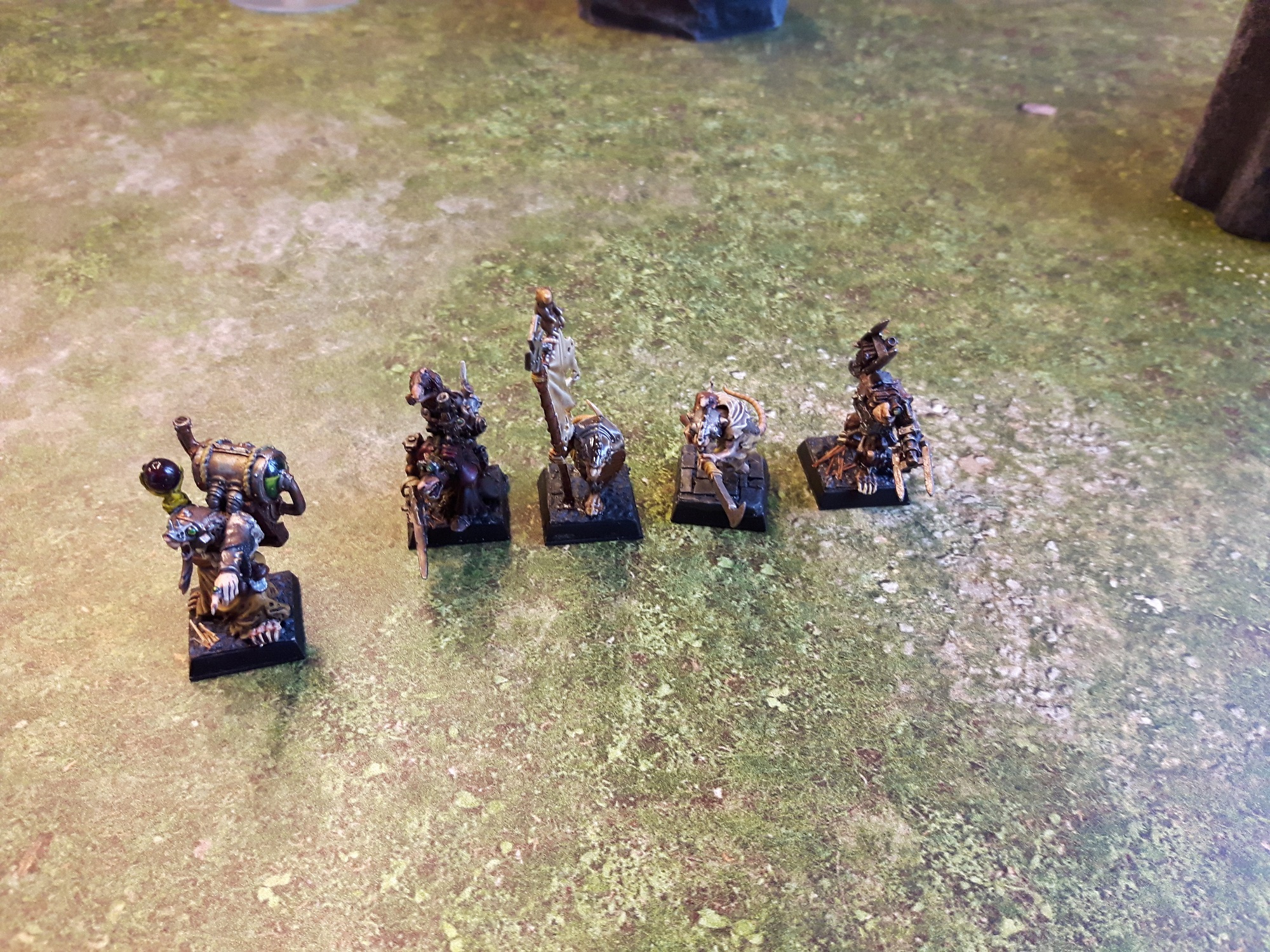 Die Skavenliste basiert auf einem großen Block Sklaven, einer Rotte Klanratten, in der sich die Warlocktechniker Kilowatt und Eisenschwanz befinden. Die Flanken werden von einer Einheit Giftwindkrieger um Herbert Beizmann und Zzzapp in seinem Todesrad geschützt. Wie so oft folgen den Skaven eine wuselnde Menge an gewöhnlichen Ratten (Rattenschwärme).