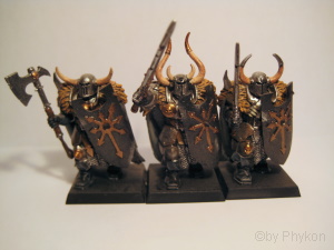 Alles im allem schauen die Minis wirklich gut aus. Das "Flammenmuster" was immer wieder in jeder Einheit irgendwo auftaucht verleiht dem ganzen bestimmt ein sehr stimmiges Gesamtbild. Ich täte gerne ein Bild der gesamtem Armee sehen. Sieht bestimmt gut aus.