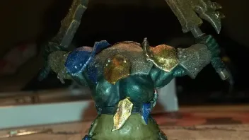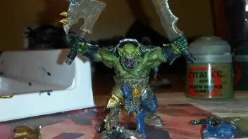 Bis jetzt hab ich nur mein Farbschema an einen Brute getestet. Habe mir für dieses Monat erstmal die Haut und Grundrüstung vorgenommen, deswegen sind noch paar Teile nicht bemalt ( Zähne, Hörner, Holz, Leder). Diese werden aber noch folgen. Ich hab den Burschen nicht komplett zusammen gebaut, damit ich die Teile besser anmalen kann. Für den Brute gefällt mir das Ergebnis schon mal sehr gut. Für heute steht noch der Zusammenbau eines Ardboys auf den Plan und wie sich das Schema auf den Kerl anwenden lässt. Naja, hier mal ein paar Bilder zu den bereits gemalten Brute: