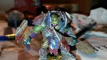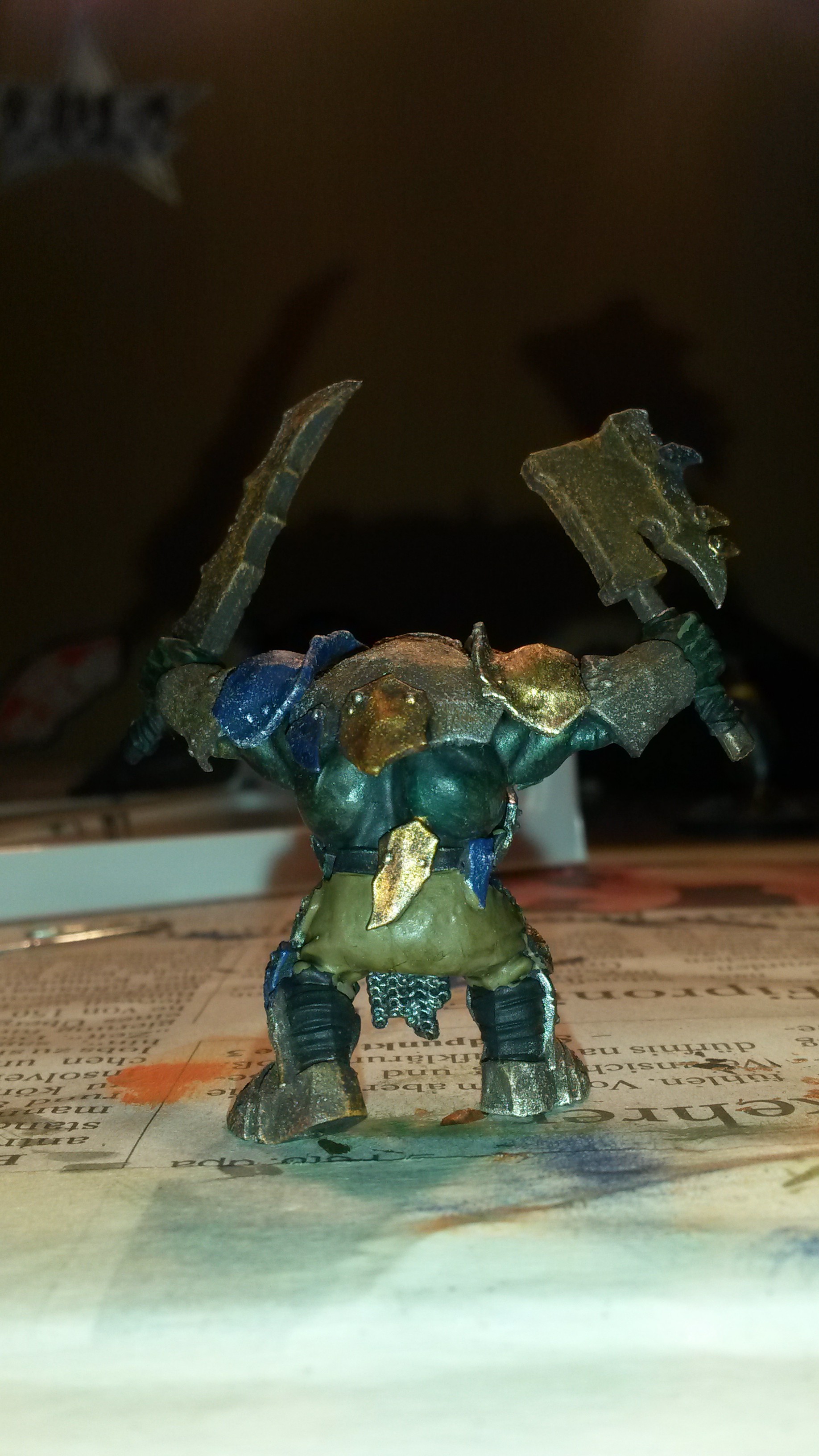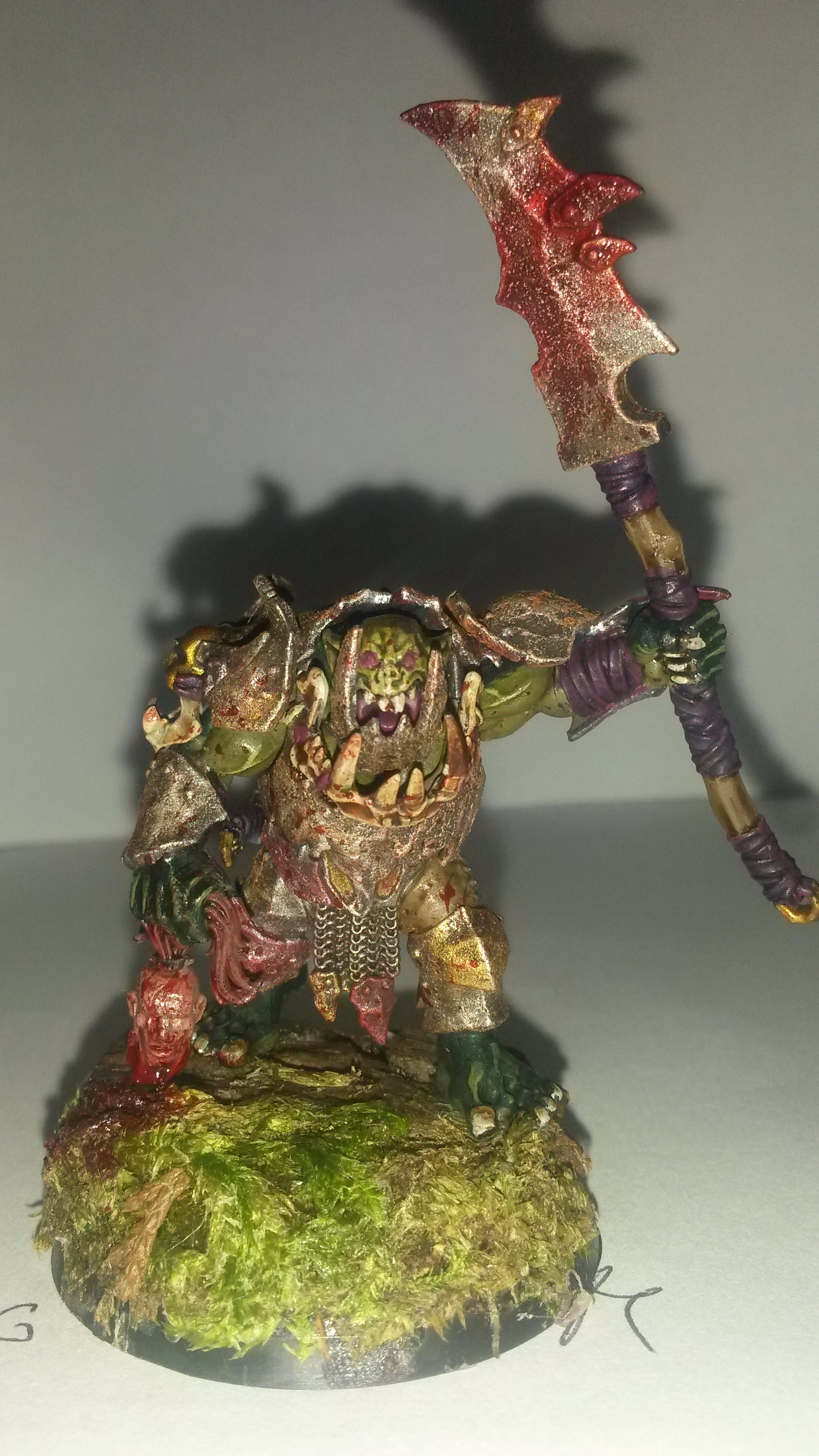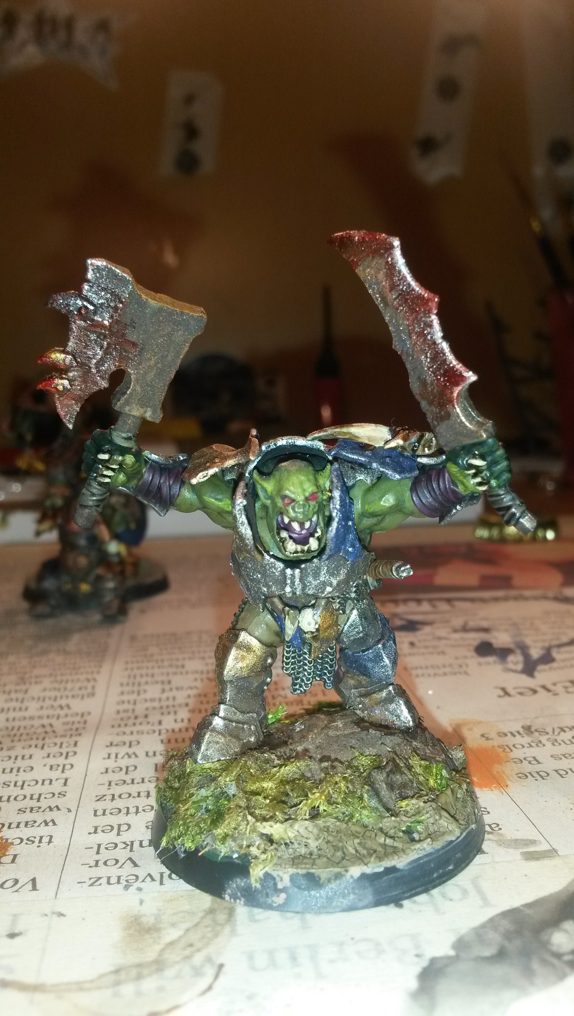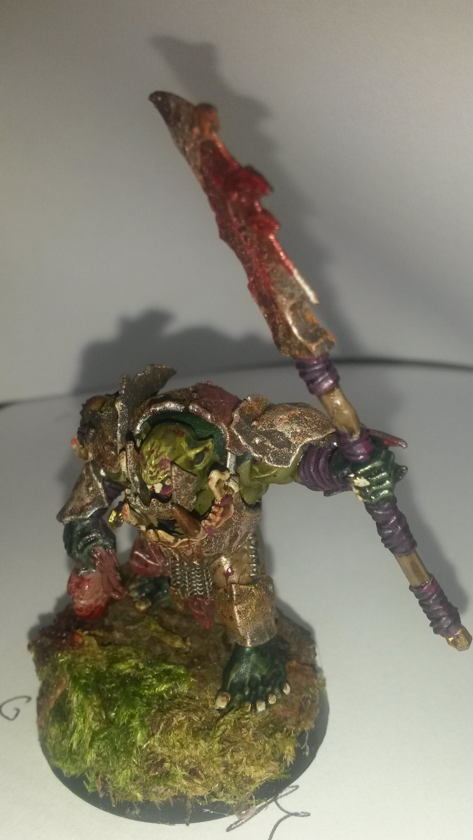 Bis jetzt hab ich nur mein Farbschema an einen Brute getestet. Habe mir für dieses Monat erstmal die Haut und Grundrüstung vorgenommen, deswegen sind noch paar Teile nicht bemalt ( Zähne, Hörner, Holz, Leder). Diese werden aber noch folgen. Ich hab den Burschen nicht komplett zusammen gebaut, damit ich die Teile besser anmalen kann. Für den Brute gefällt mir das Ergebnis schon mal sehr gut. Für heute steht noch der Zusammenbau eines Ardboys auf den Plan und wie sich das Schema auf den Kerl anwenden lässt. Naja, hier mal ein paar Bilder zu den bereits gemalten Brute: