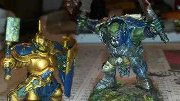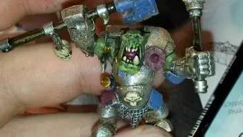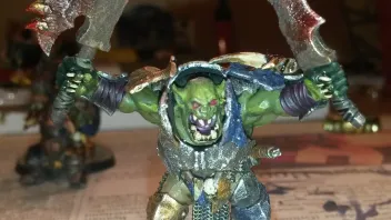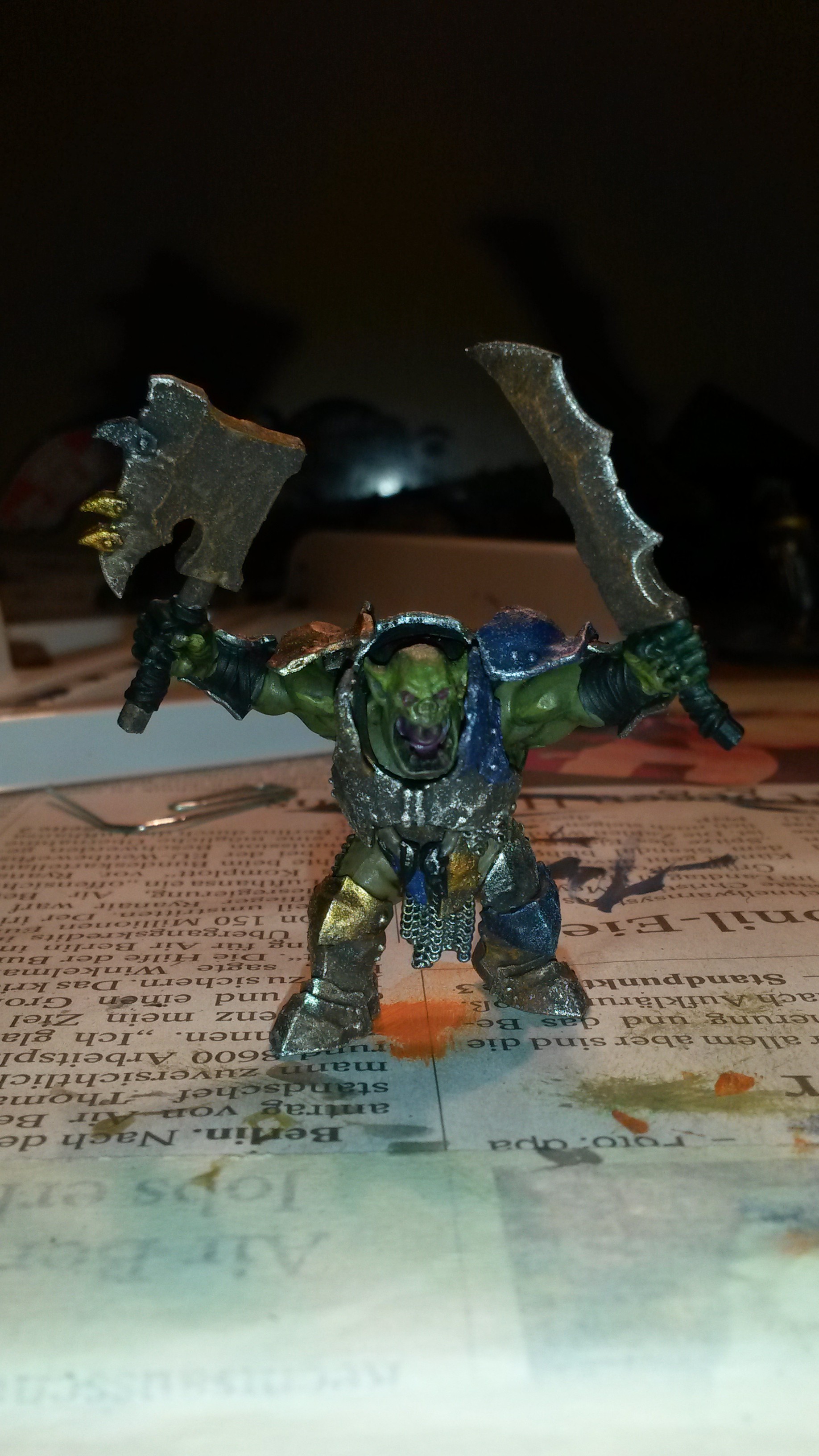 Da mir bisher die Clans von GW und speziellen deren Farbeschema nicht wirklich zugesagt haben, hab ich mich entschlossen mir einen eigenen Clan zu überlegen. Da ich aus den bayrischen Wald komme, hab ich mich Richtung Wald-orks entschieden (Falls mich die Muse küsst, werd ich evtl noch ne kleine Geschichte dazu verfassen). Dafür habe ich mich für eine zweifarbige Hautfarbe entschieden, saftiges, dunkles Grün am Rücken, heller am Bauch und Gesicht. Die Rüstung werde ich größenteils in richtig rostigen Eisen gestalten, außer die kleinen Plättchen, hierfür hab ich mir verschiedene Farben überlegt. Da es ja oft heißt, dass die Ironjawz die Rüstung ihrer Opfer fleddern und auf ihre eigene klatschen, werde ich dabei verschiedene Farben von den anderen Fraktionen nehmen ( damit alle sehen könne, dass ich der Härteste bin, hi hi). Die Basen werde ich dann ebenfalls im Waldschema halten. Hierbei werd ich die Tage mal bisschen was ausprobieren und im Wald nach brauchbaren Material suchen. Habe da im speziellen bissl Holz und Moos im Kopf.