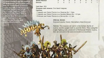 - 6" um E. Einheit müssen alle Gegner zu Beginn einer Runde den MW Test ablegen. Bei Misserfolg = Flucht.
