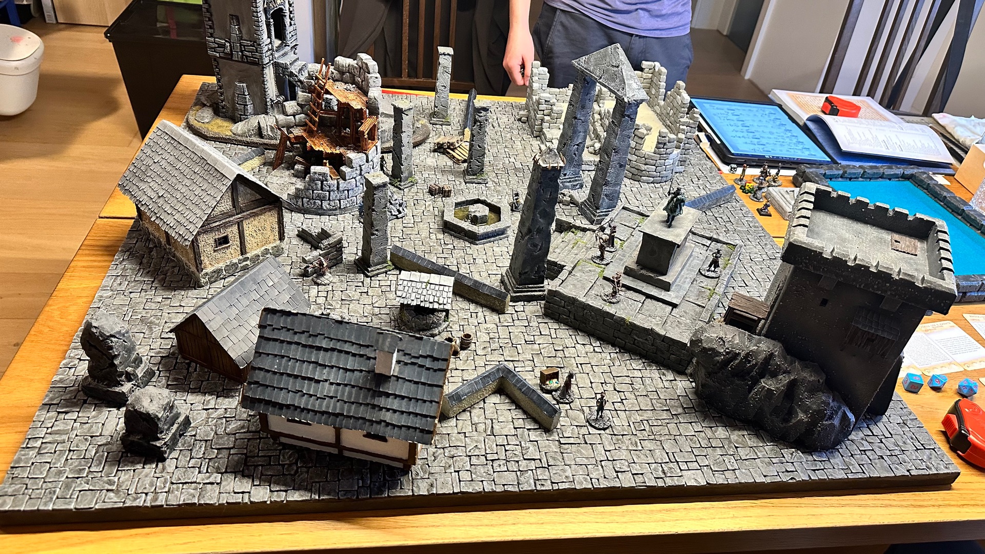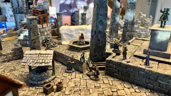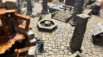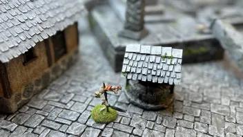 Wenzl aktiviert Miri, die sich mit ihrem Schatz in Richtung Spielfeldkante bewegt, und danach zaubert er noch "Magischer Sprung" auf sie, was sie weitere 5" bewegen lässt.