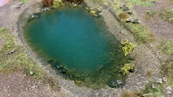 Ja finde das Wasser sieht sehr gut aus. Ich würde vielleicht noch eine ganz, ganz leicht gefärbte Schicht und dann eine klare draufmachen, in der Hoffnung, dass das einen schönen Tiefeneffekt gibt. Epoxid kann man in relativ dicken Schichten gießen, oder? Kenne mich damit nicht aus, ich nutze aus Faulheit dieses Acrylwasser. Wenn ja, fände ich noch ein Objekt im See ziemlich cool (Schatztruhe, Seerose, Fisch o.ä)