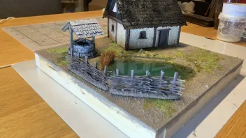 Und es gibt wieder ein paar WIP Fotos. Da ich ja als nächstes einen Skirmisher spielen will, muss noch etwas mehr Gelände her, in Form von Häusern, Podesten, Brunnen, Mauern, Zäunen, etc., um ein interessanteres Setting zu gestalten, Sichtlinien zu blockieren...