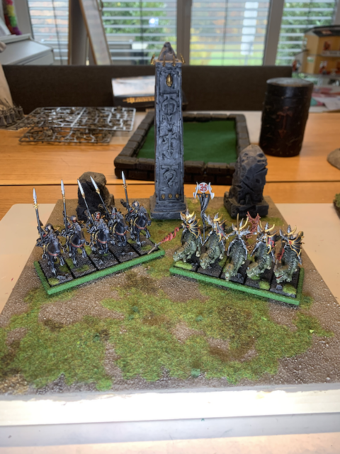 Eigentlich wollten meine Tochter und ich am Wochenende eine 1000 Punkte WHFB Schlacht (meine O&G gegen ihre Waldelfen) spielen, aber es hat sich nun Besuch angekündigt, da geht es nun leider doch nicht (wir sind etwas eingerostet beim Spielen, deswegen dauert das immer länger). Ich hab sie aber vorhin überreden können, mit mir stattdessen, wenn der Besuch wieder weg ist, eine Partie Frostgrave zu spielen.