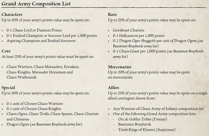 3. Ich darf soviele Aspiring Champions und/oder Exalted Sorcerers nehmen wie ich lustig bin (bzw die Punkte hergeben, in dem Fall 350)4. Ich darf wenn ich lustig bin auch noch eine Hellcannon aufstellen wenn ich will