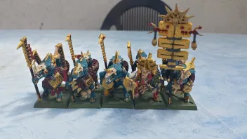 Ein Magier auf bael taurus, den CZ Dampfpanzer, einem (great) taurus? 2 Raketenwerfern dazwischen ein Maschinist, und der übliche Block zwerge mit AST.