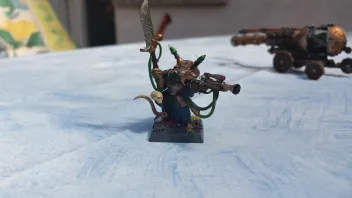 Die Liste meines Gegner war sehr interessant, da dort recht viel große Modelle standen . Dort stand ein Verminlord, ein 45 Surmi Glockenblock mit Assa und AST, 2x5 riras, 3 x Sklaven, 5 Gossenläufer, 3 Fiends mit Ratling, ein Todesrad und die WBK.