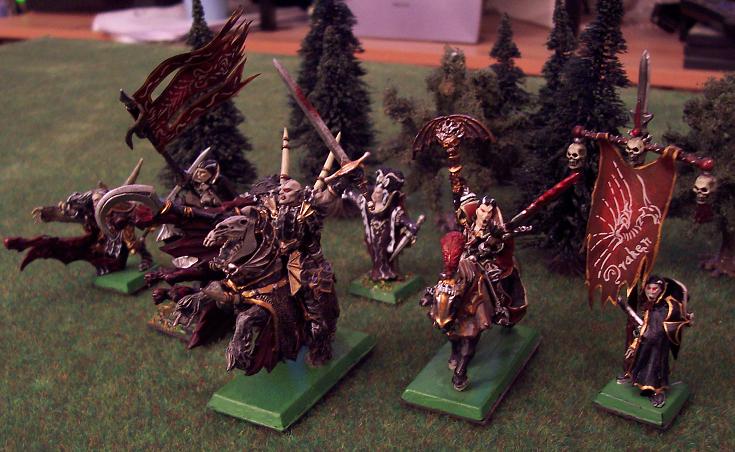 Eine Mischung aus alten und neuen Modellen. Die Bases habe ich leider noch nicht ausgestalten können, aber das folgt noch.Ich habe meine alten Carstein-Modelle zu Armeestandartenträgern umfunktioniert. Das neue Modell der weiblichen Vampirin spiele ich nicht, weil ich die alte Isabella schöner finde