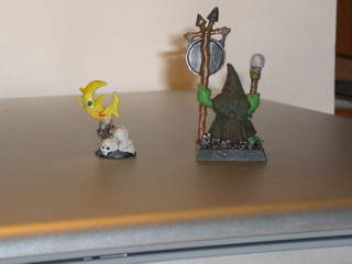 Mit den Farben hatte ich ein wenig zu kämpfen, da ich mir dachte, dass die alten Modeleisenbahnfarben klasse sind, aber leider glänzen die und sind etwas zu dickflüssig -- wie man bei Goblin 1 sehen kann.