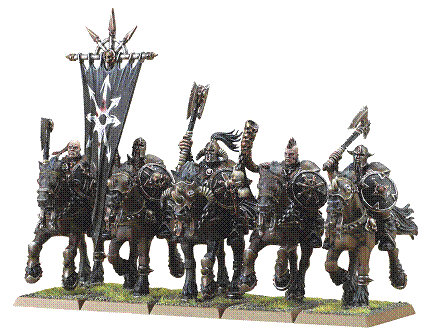 Barbaren in Form von mittlerer Kavallerie, hier nicht mit Flegel und Mal des Khorne, sondern eher die geschütze Variante (Geschmackssache) Finde nur das Truppen, die schnell an die Linie des Gegners vorrücken können, dann auch selbst entscheiden sollten, was Sie da angreifen wollen. Rasende Barbaren in irgendwelche Geister oder unerschütterliche Einheiten gelockt hilft mit nicht viel.